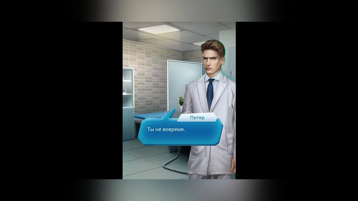 Героиня врывается в кабинет Питера, но у него пациент.