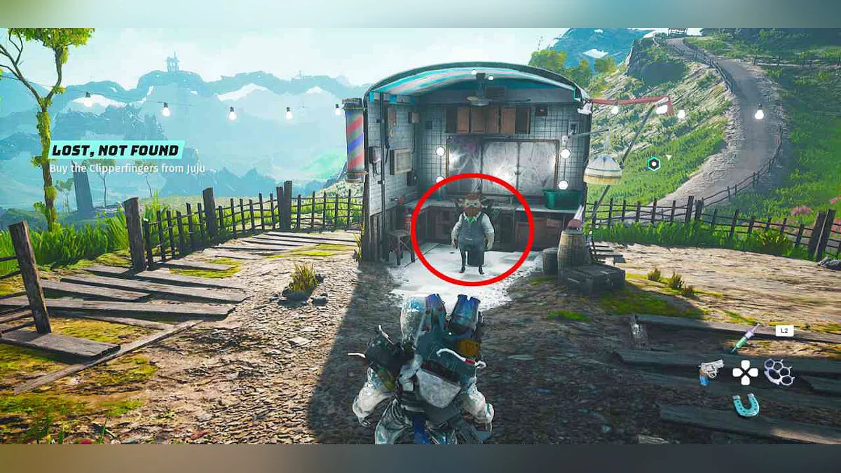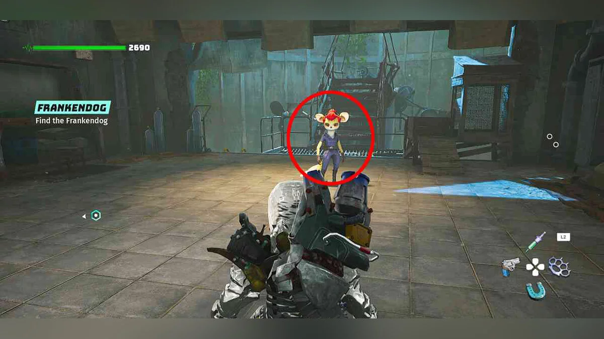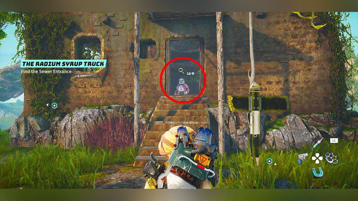 Вы встретите её здесь во время основного квеста «Гноатромер» (The Gnoatgroomer).