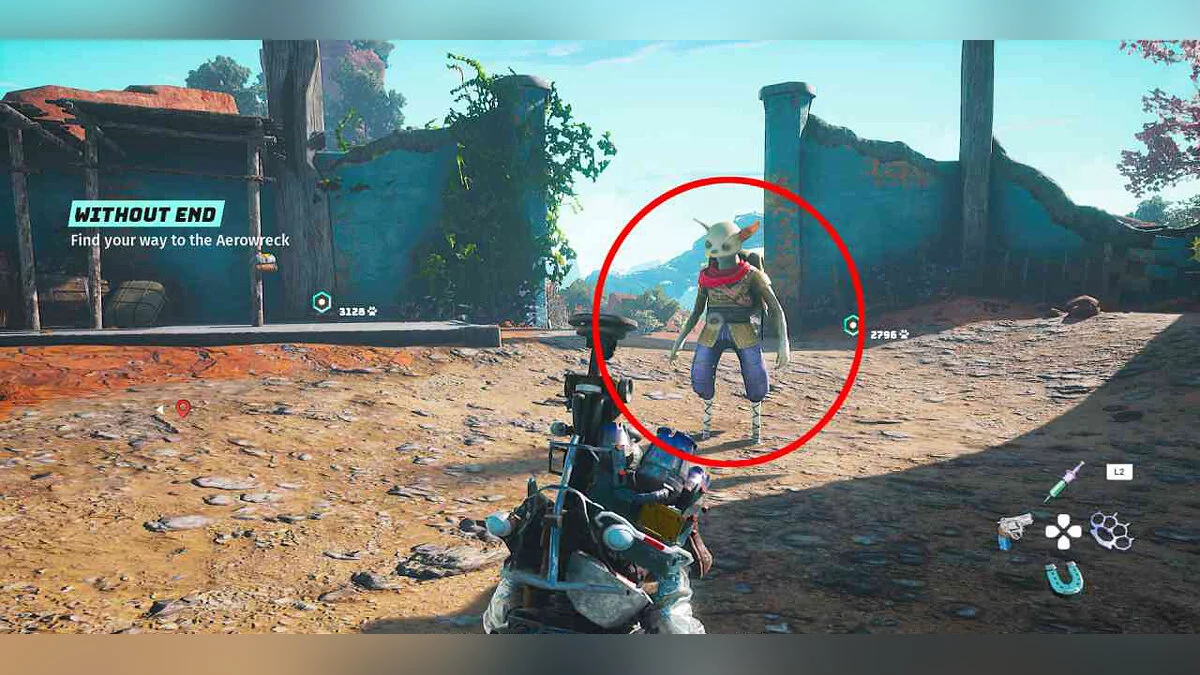 Чтобы добраться до этого места, вы должны выполнить цепочку побочных квестов от Лобо (предыдущий побочный персонаж). Это откроет дирижабль, который позволит вам долететь до острова, где находится Сол.