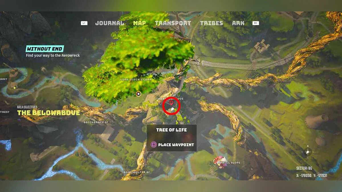 Находится на Древе жизни (попасть сюда можно после победы над одним из пожирателей миров). Вы сначала встречаетесь с этим персонажем во время пролога, а затем можете найти его здесь позже, во время основного квеста «Мастер-план» (The Masterplan).