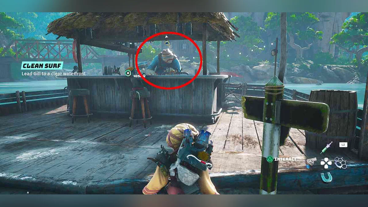 Находится в небольшом баре. Чтобы подобраться к персонажу, вам понадобится лодка. Её можно получить автоматически по сюжету.