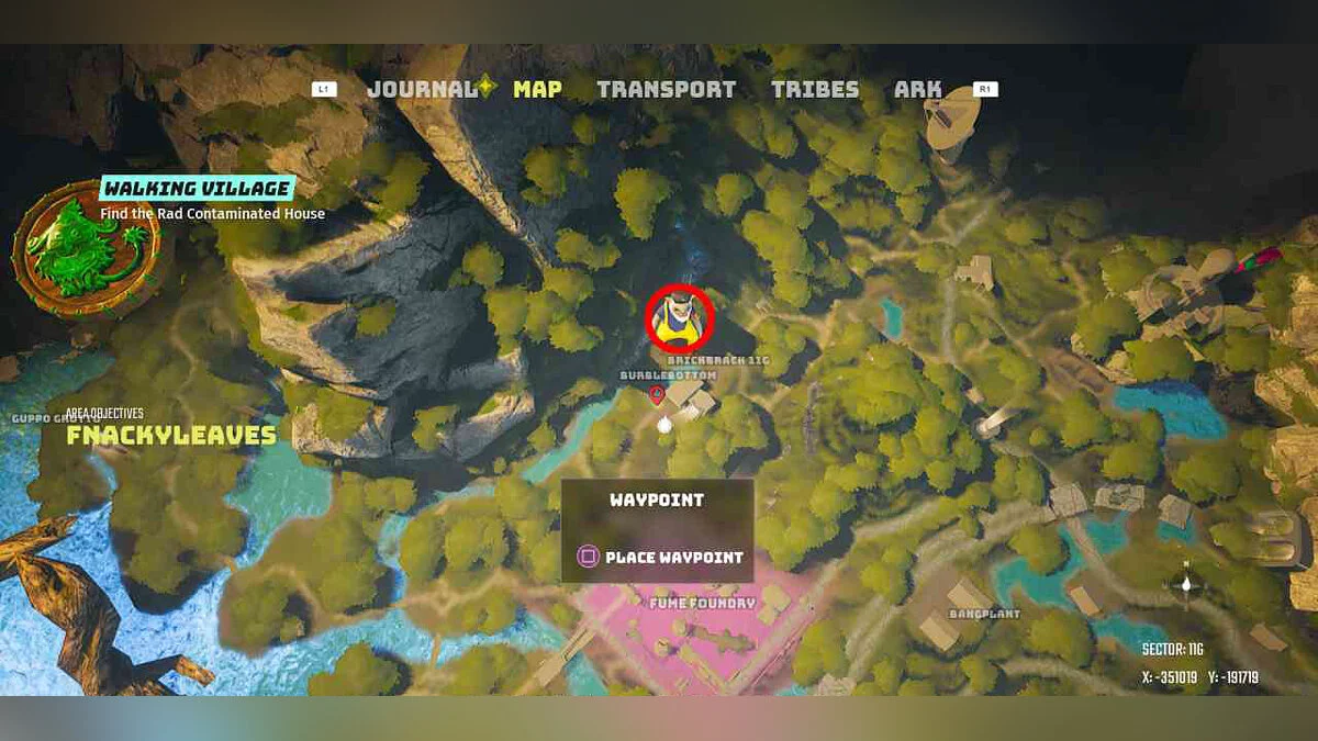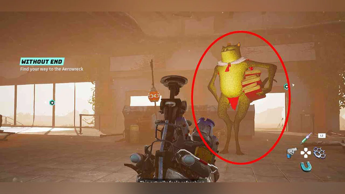 Находится в Кирпичтауне. Вы встретите его здесь во время основного квеста «Рециклопед» (The Recyclopedian).