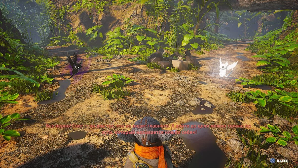 Идите по правой тропинке. Вы попадете на поляну, где появится первое задание — необходимо осмотреть кнозла (местное ездовое животное).
