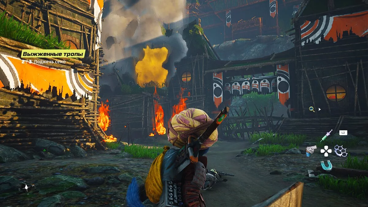 Двигайтесь в сторону маркера и попадете в главный дворец племени. Пройдите через ворота и встретьтесь с шифу — предводителем.