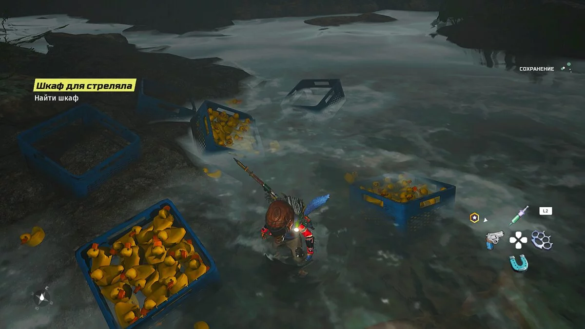 Проходите дальше — попадете в большую затопленную комнату с мини-боссом. После победы окажется, что вам нужно собрать пять резиновых уток. Найти их можно в той же комнате.