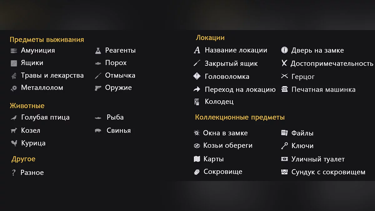 Существует интерактивная карта всех предметов из Resident Evil Village, которую вы можете посмотреть по этой ссылке. Она довольно проста в обращении и многофункциональна. Пользователь может выбрать из списка необходимые предметы, что очистит карту от ненужной информации.