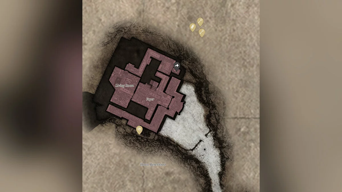 Четкой карты и планировки дома Итана в игре не предусмотрено, поэтому мы лишь остановимся на предметах, которые можно найти в доме.