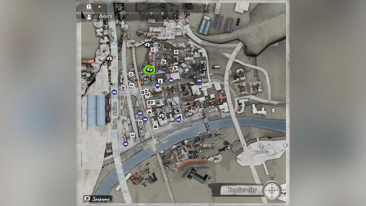 При исследовании города вы можете отыскать всего два общественных туалета, которые расположены в разных частях вокзальной площади. Цена за использование общественного туалета всегда фиксированная — 20 крон. Но если вы изучите навык «Стратег», то сможете использовать специальный вариант диалога, чтобы снизить стоимость использования туалета до 10 крон.