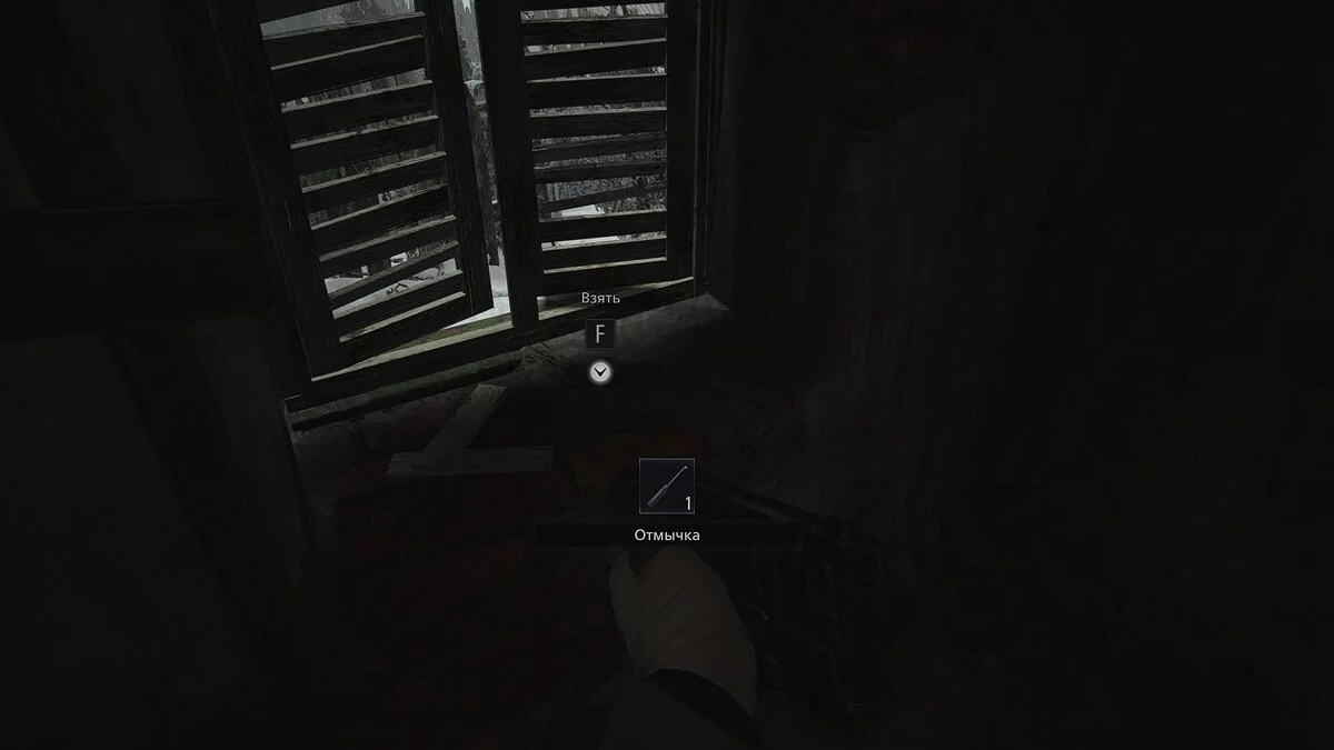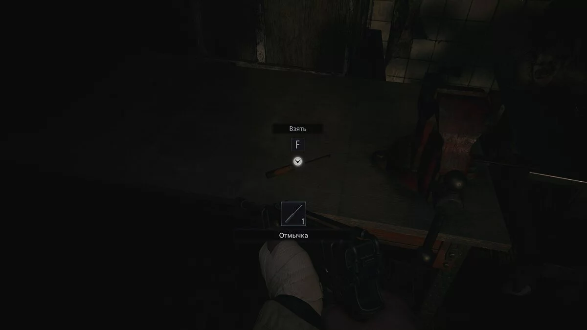После побега от Димитреску на лифте, вы должны отправиться в оружейную, где произойдёт бой с одной из дочерей. Отмычку вы найдёте на тумбочке, где лежат самодельные бомбы. Использовать предмет можно рядом со спальней, где Итану посчастливилось повисеть на крюках: