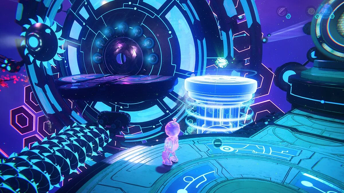 Прыгаем по островкам и находим магазин. При помощи рывка проходим дверь. Активируем консоли, чтобы пройти дальше. Прыгаем по платформам и ломаем вентилятор, чтобы попасть внутрь. Если сломать второй вентилятор, то можно найти тайник с кристаллами.