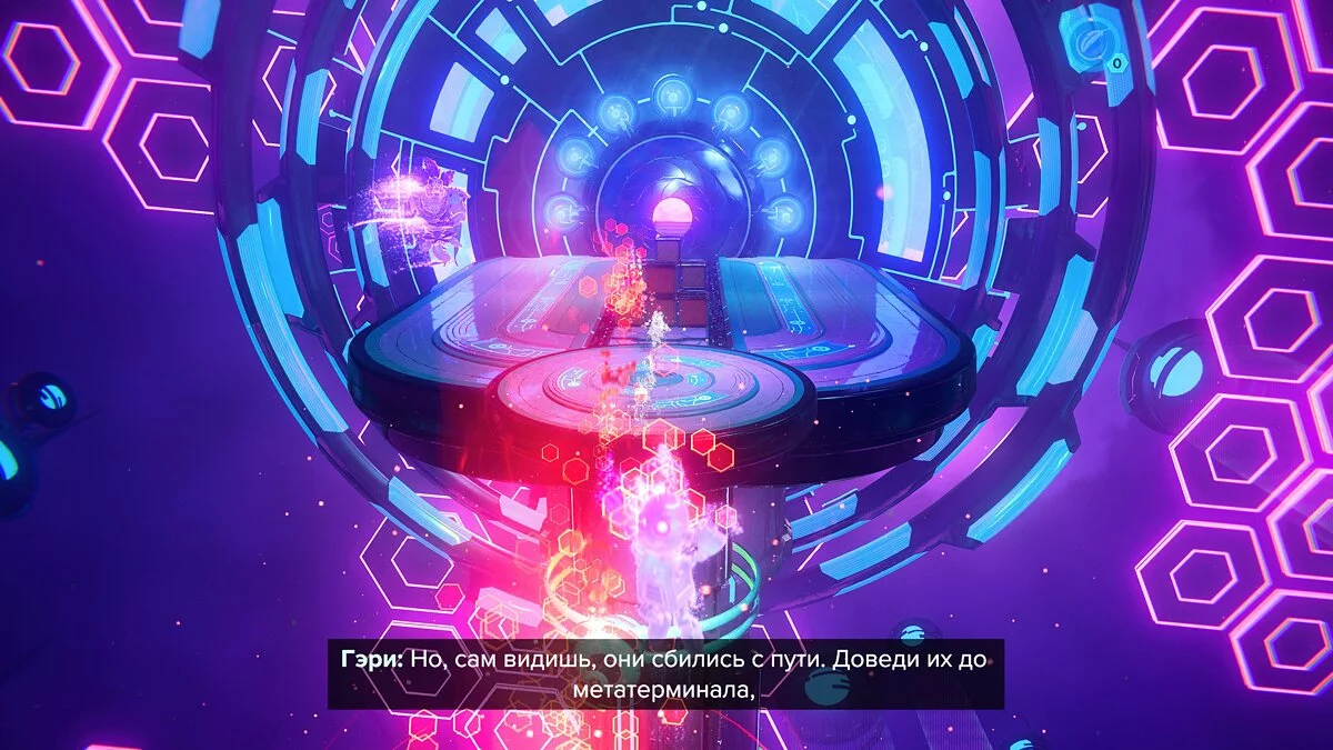 Разбираемся с роботами и используем механизм, чтобы снять купол с кристалла. Возвращаемся в разрушенное измерение и используем Глючку, чтобы разобраться с вирусом.