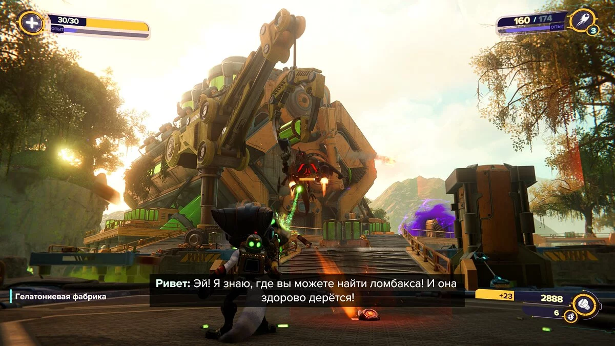 Переключаемся на Ривет. Нам нужно подняться на самый верх, используя лифты. Противников будет много, среди них будет и мини-босс, которого мы встречали ранее. Говорим с Гэри.