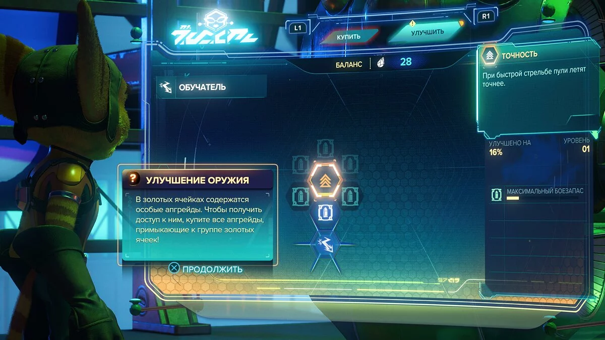 С платформы планируем вниз и натыкаемся на магазин. Мимо пробегает Ривет с Кланком и улетает на корабле. Обращайте внимание на карту, там подсвечены полезные предметы и показаны осмотренные области. Некоторые двери в начале будут закрыты. Собираем Раритан и закупаемся у торговца.