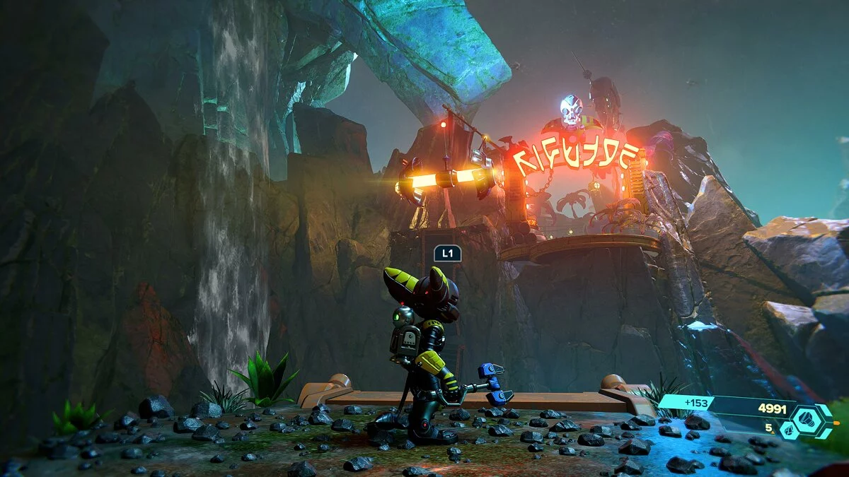 Игра начинается со сцены, в которой Ривет, облачённая в спецкостюм, крадет инфобота. На местного жителя нападают охранники, а она, вместо того, чтобы идти на корабль, спасает его.
