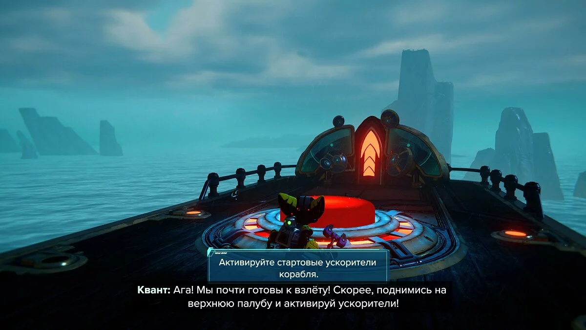 Рэтчет улетает на новую планету, уведя корабль из-под носа Нефариуса.