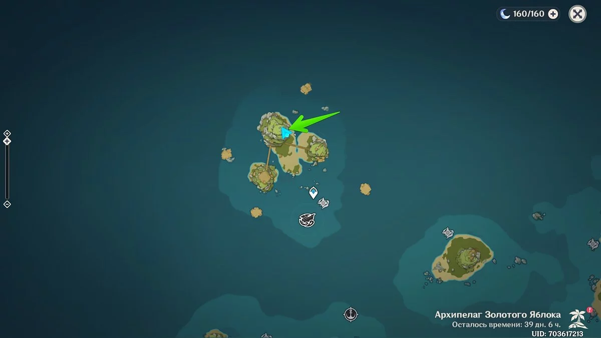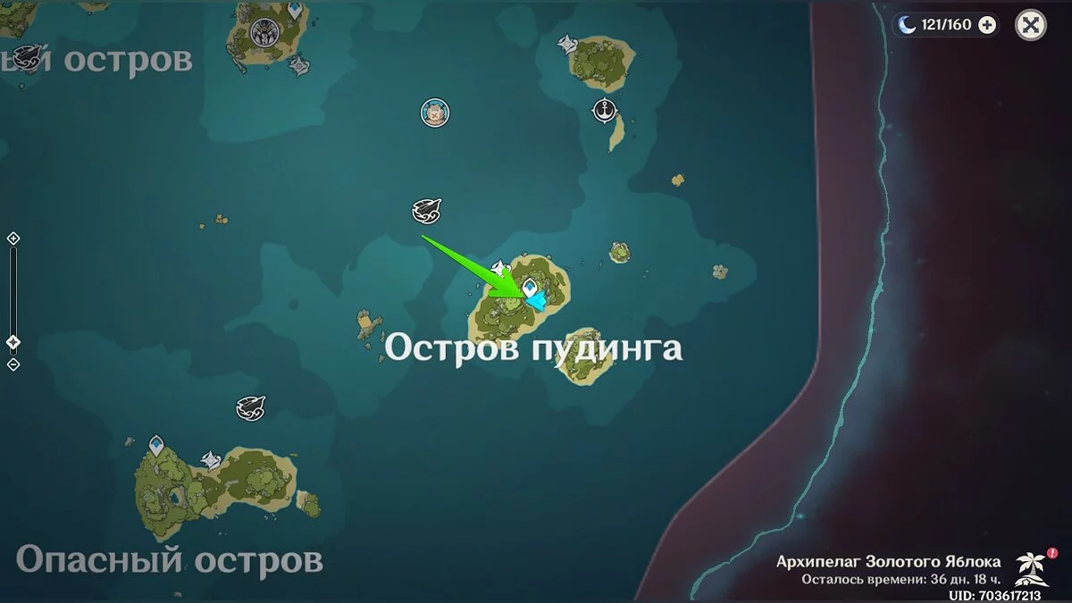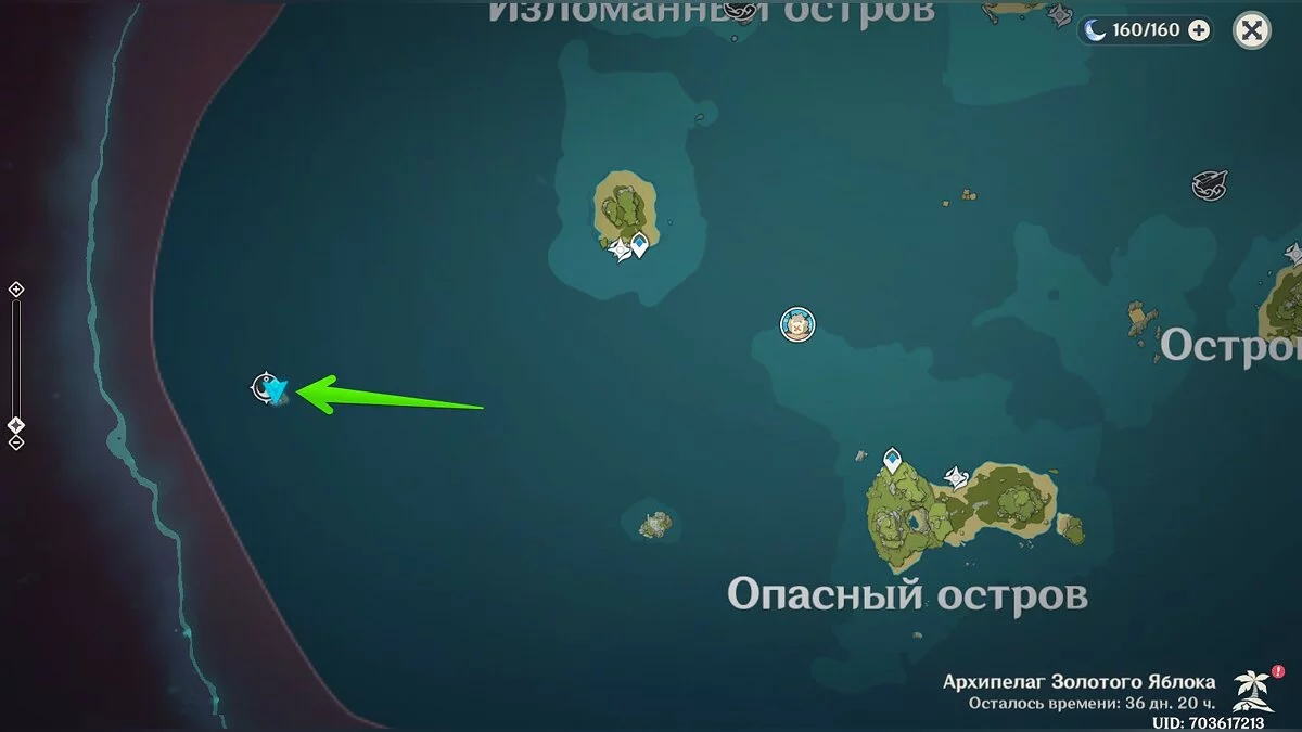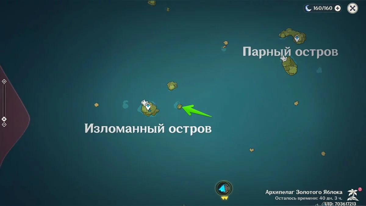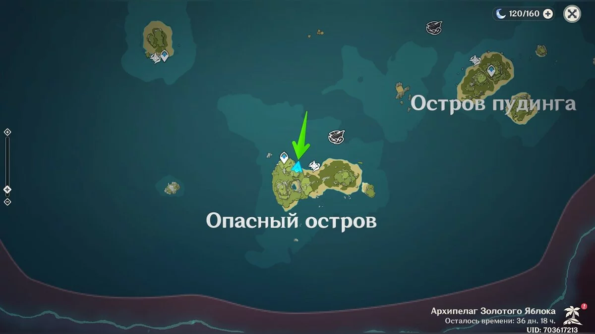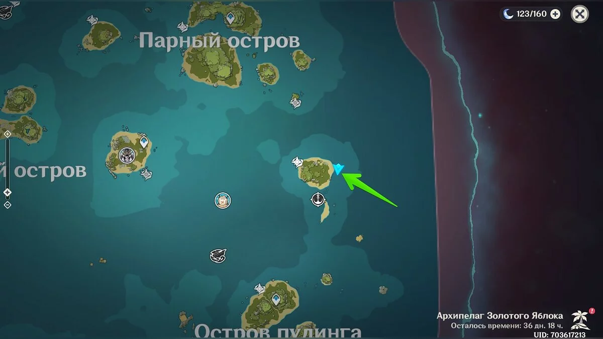 Доберитесь до острова в левом углу архипелага (выше Изломанного острова) и осмотрите центральную его часть.