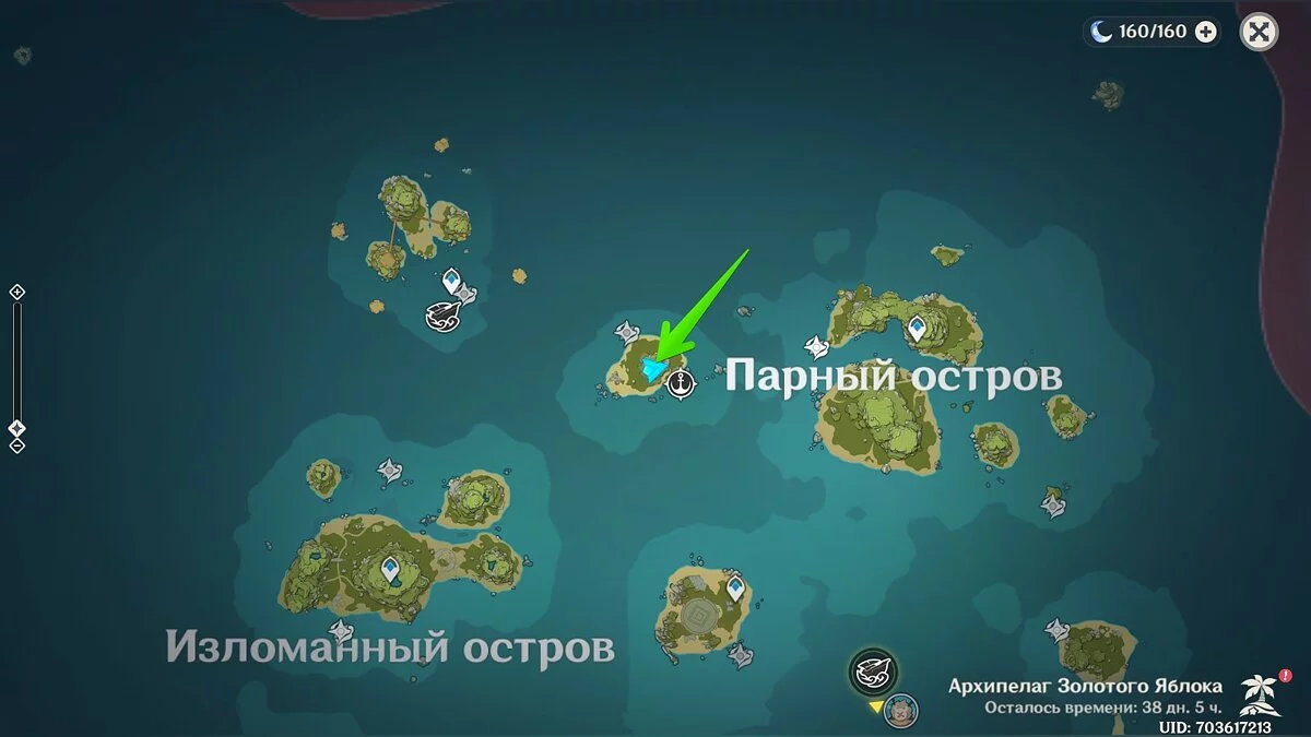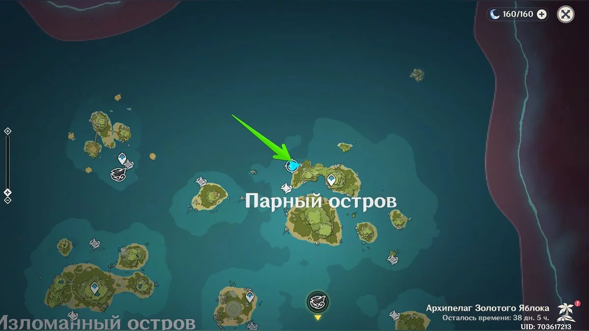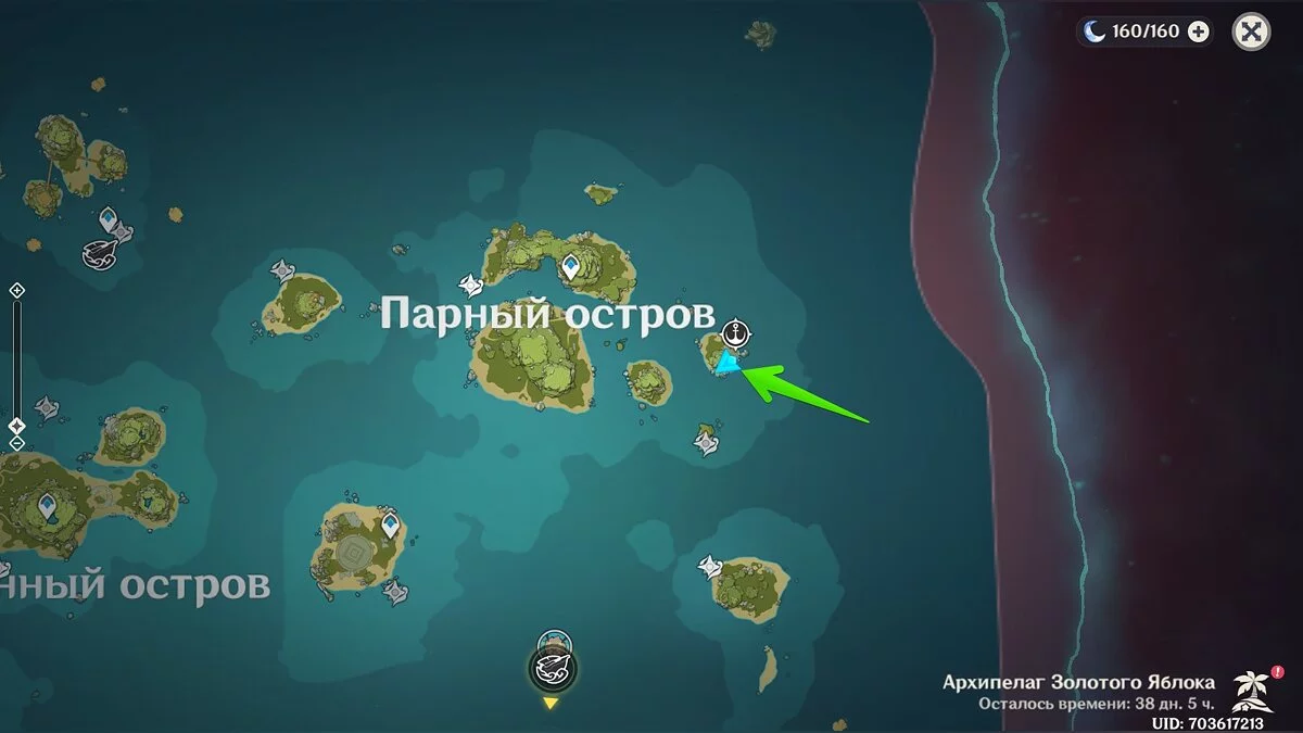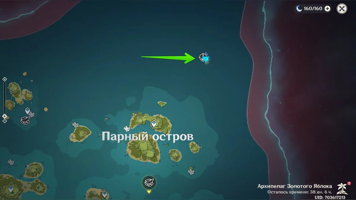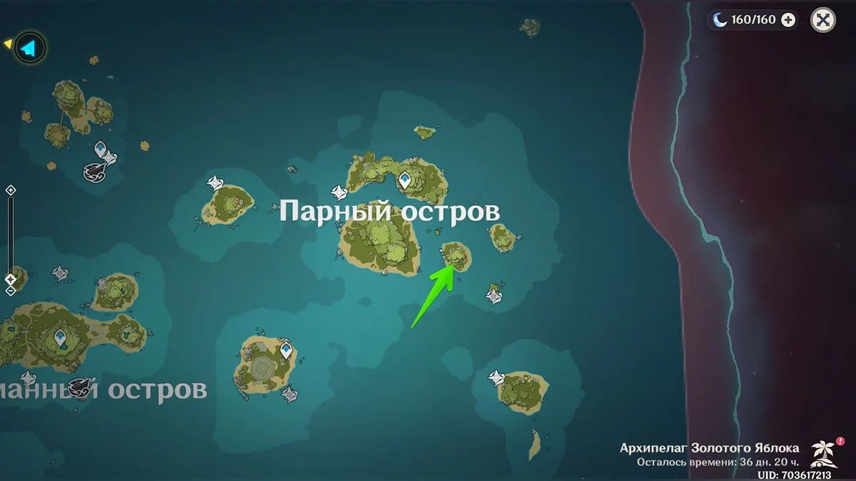 Можно обнаружить на Парном острове, неподалёку от точки для быстрого перемещения. Чтобы добраться до неё, нужно спланировать вниз при помощи крыльев.