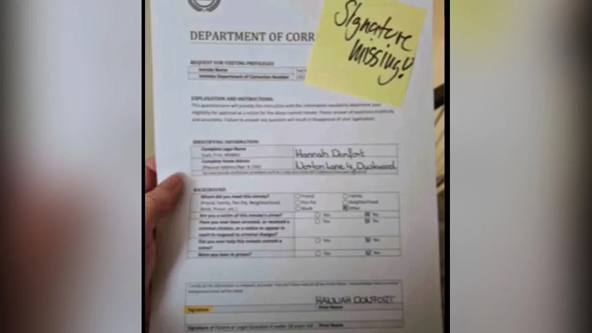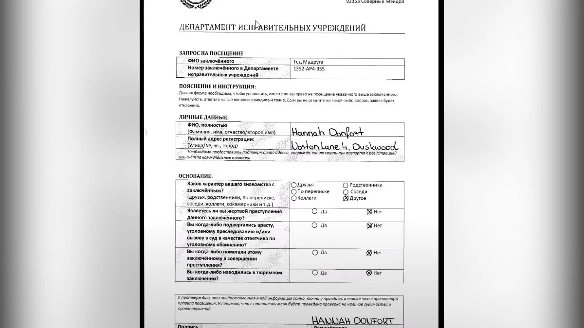 В это же время Лили отправит вам фотографию документа из почтового ящика Ханны. Этот документ — бланк заявки на посещение заключенного в местной тюрьме.