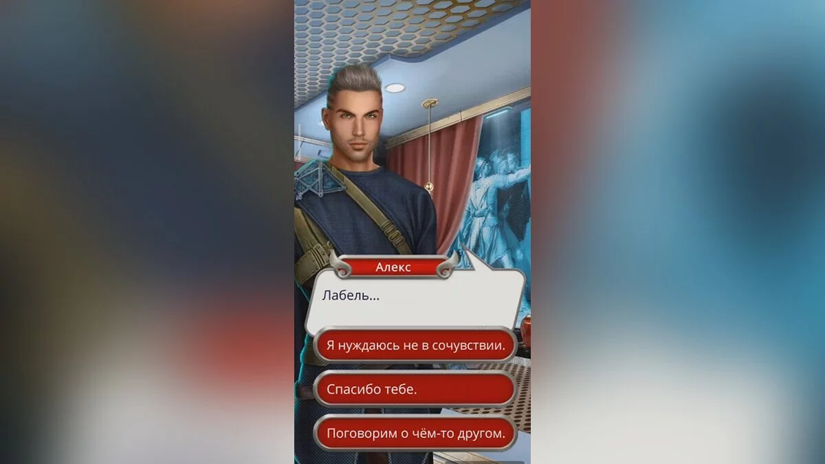 Выбор (станет доступен, если выбрали «Спасибо тебе» или «Поговорим о чём-то другом». Не влияет на статистику): Лабель…