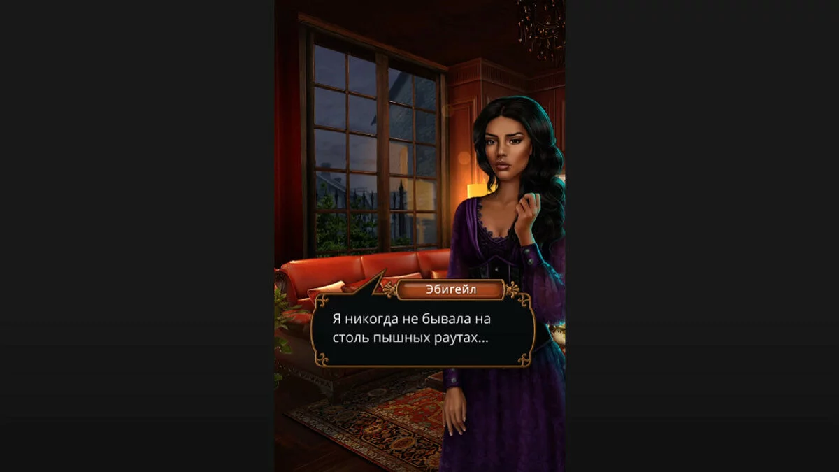 Возвращаемся в гостиную и говорим с дворецким. Королева приглашает на был. Говорим с Эби: