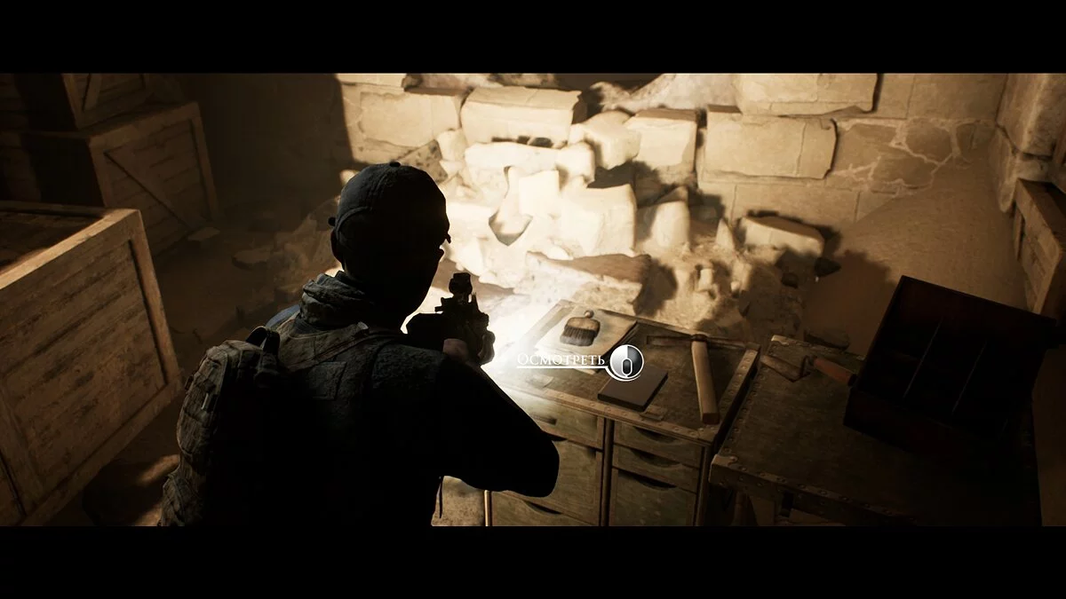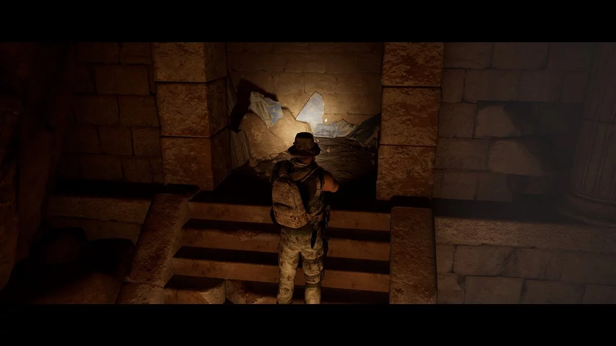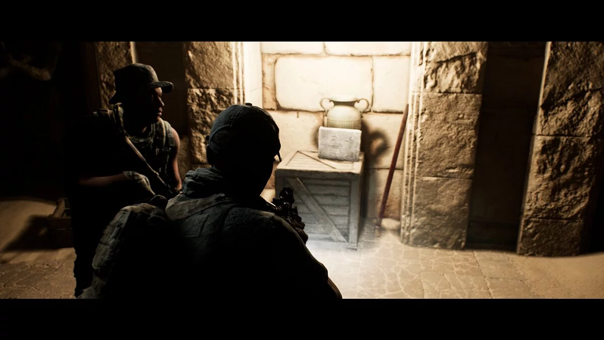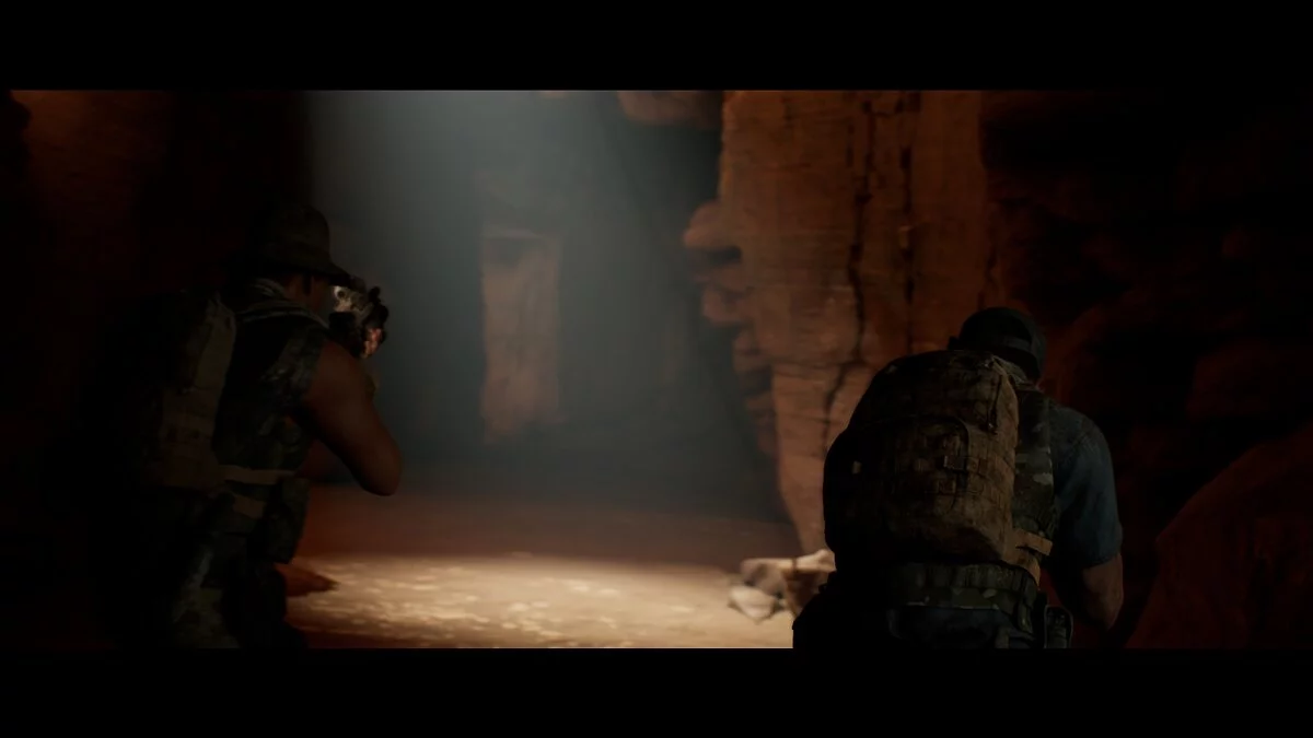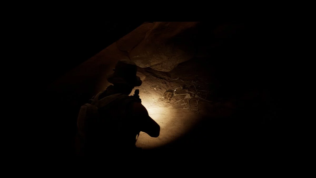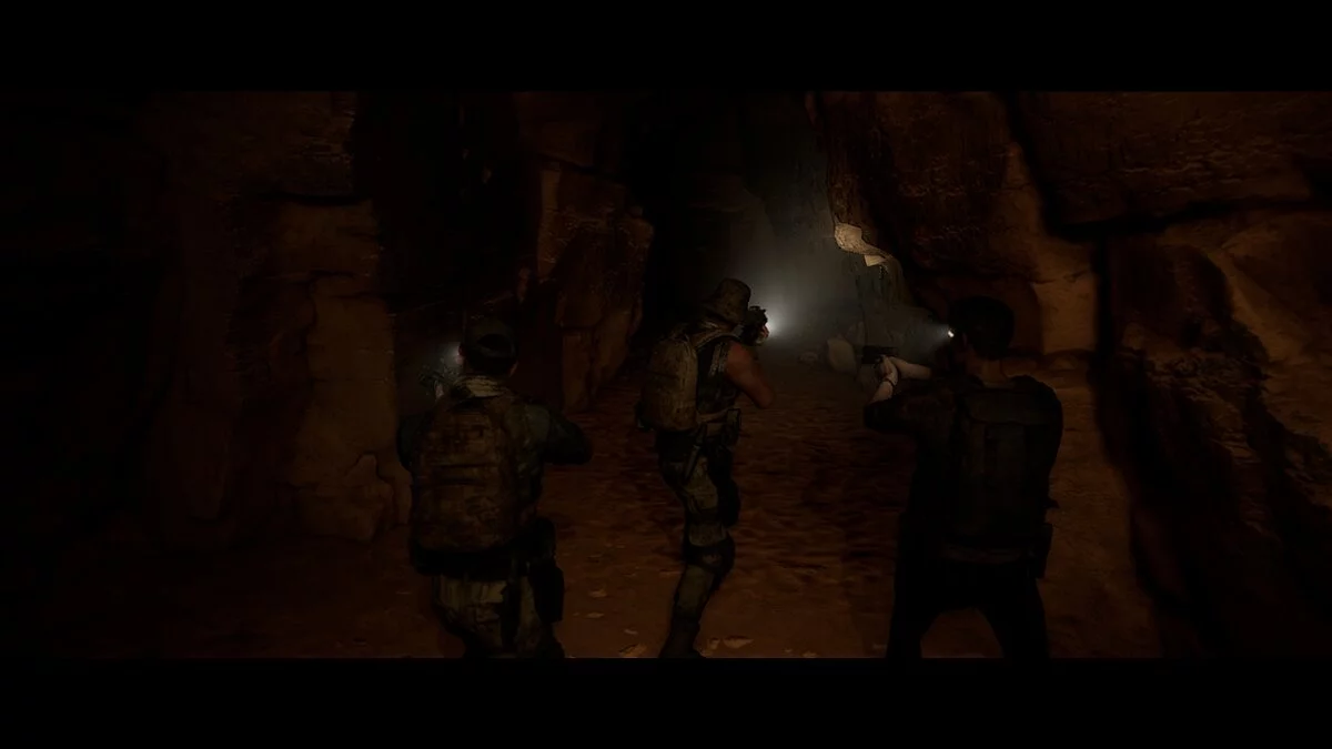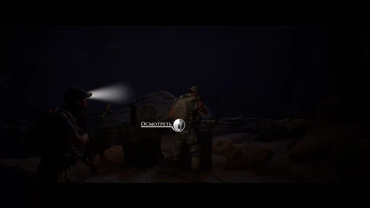 Проходим вперёд и заворачиваем в тёмный тоннель. Находим на земле аптечку Джоуи. Следуем на крики. Не спешим и выбираем осторожный метод поисков. Стреляем в иракца и оказываемся по другую сторону завала от своей команды.