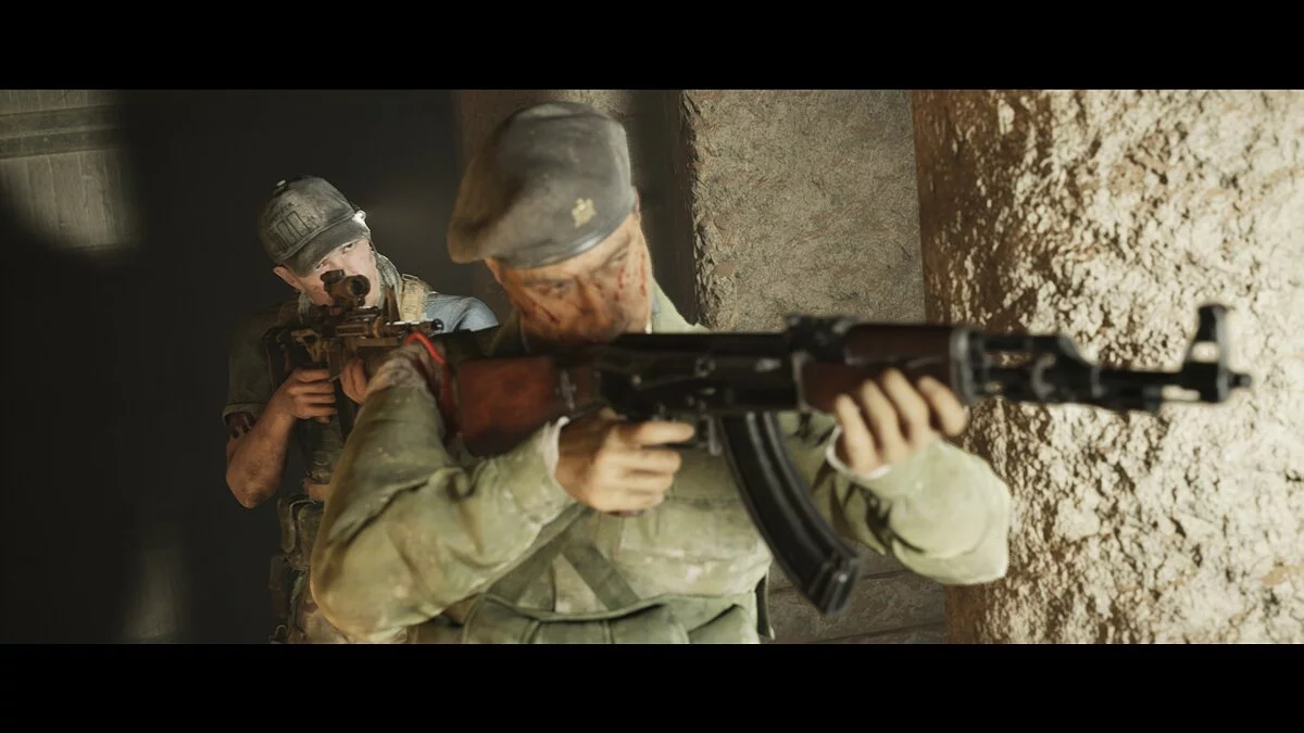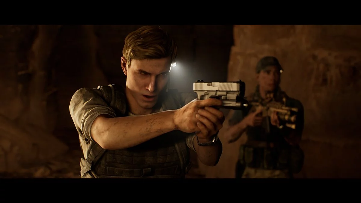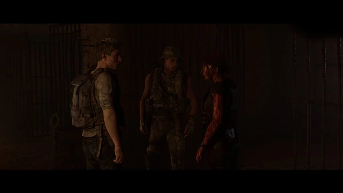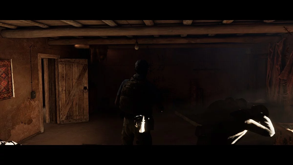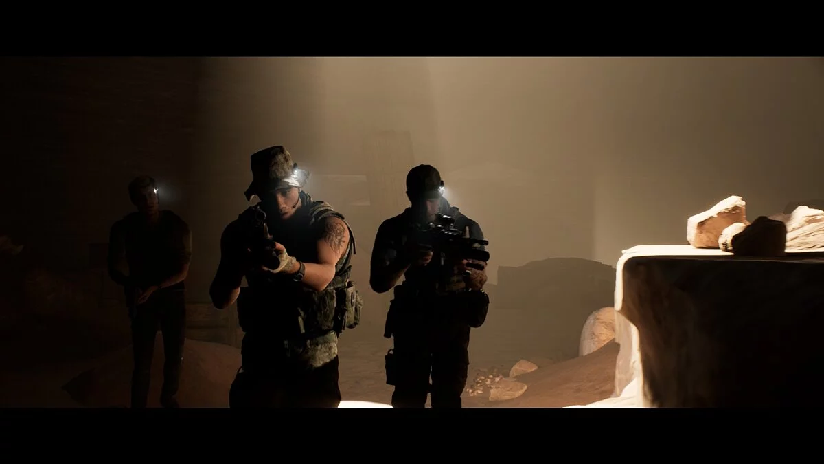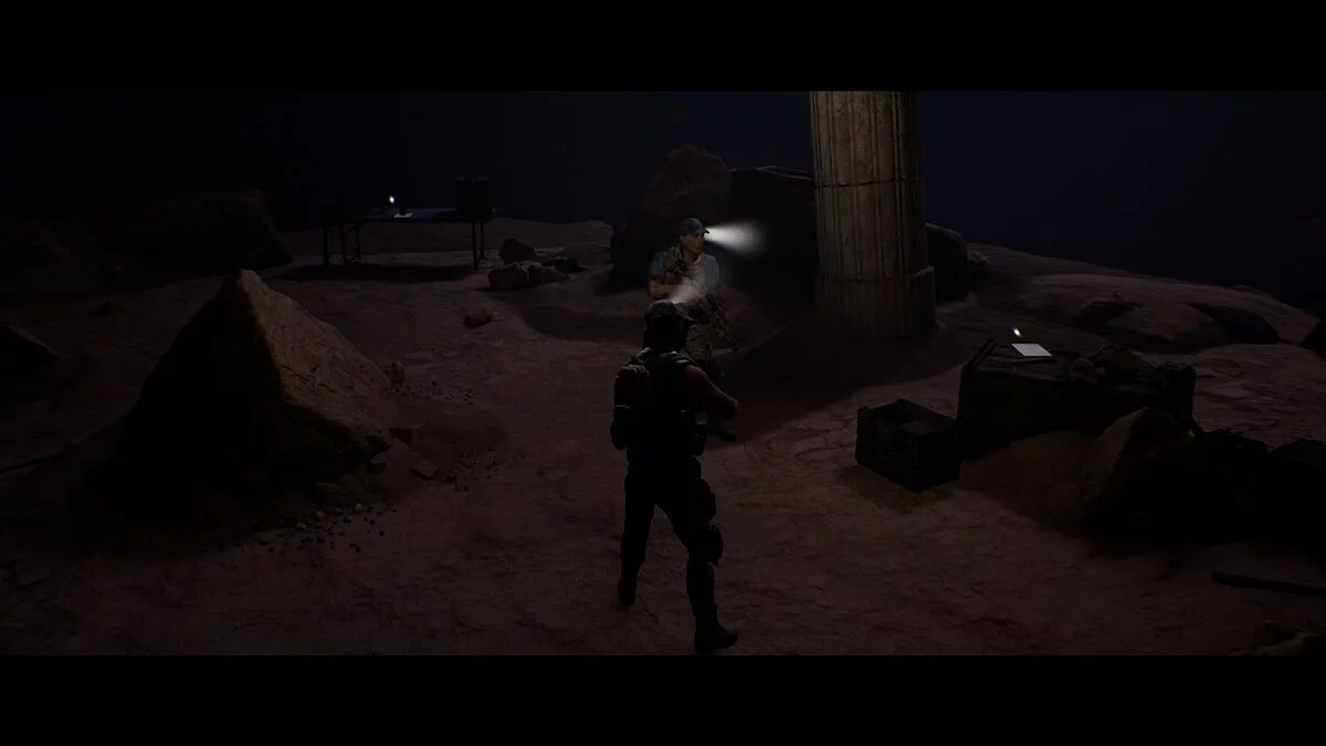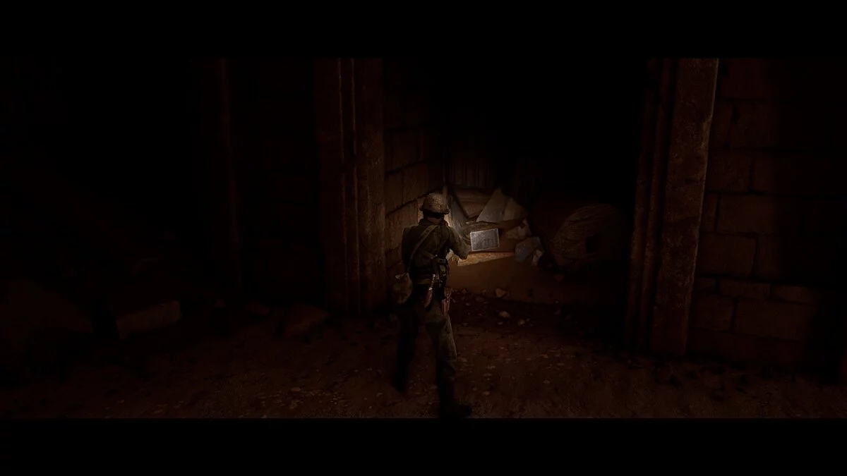 Проходим вперёд и заворачиваем в тёмный тоннель. Находим на земле аптечку Джоуи. Следуем на крики. Не спешим и выбираем осторожный метод поисков. Стреляем в иракца и оказываемся по другую сторону завала от своей команды.
