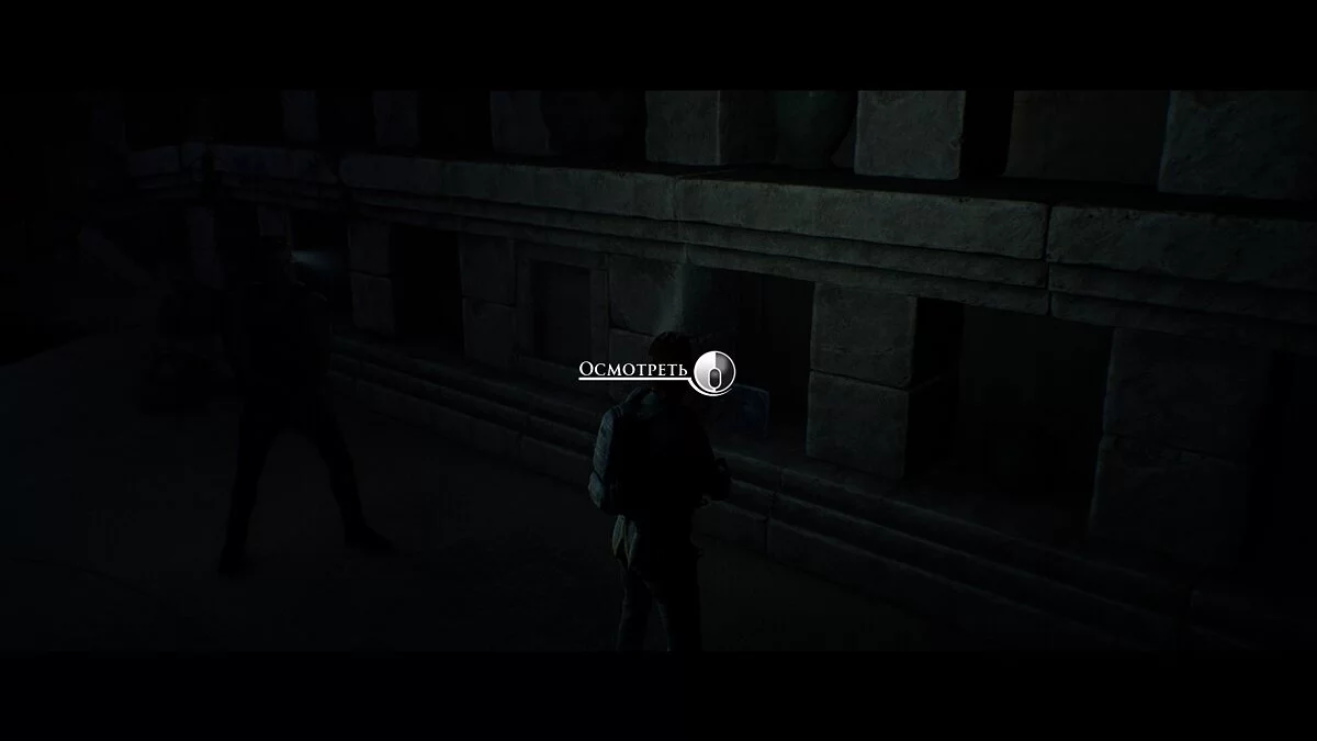 Немного правее спрыгиваем на платформу ниже. Если дотронуться до окаменевшего монстра, то придётся быстро нажать кнопку, чтобы увернуться от падающих предметов. Двигаемся по прямой и осматриваем ещё одно тело мертвеца.
