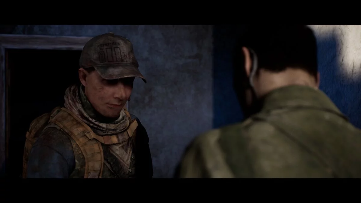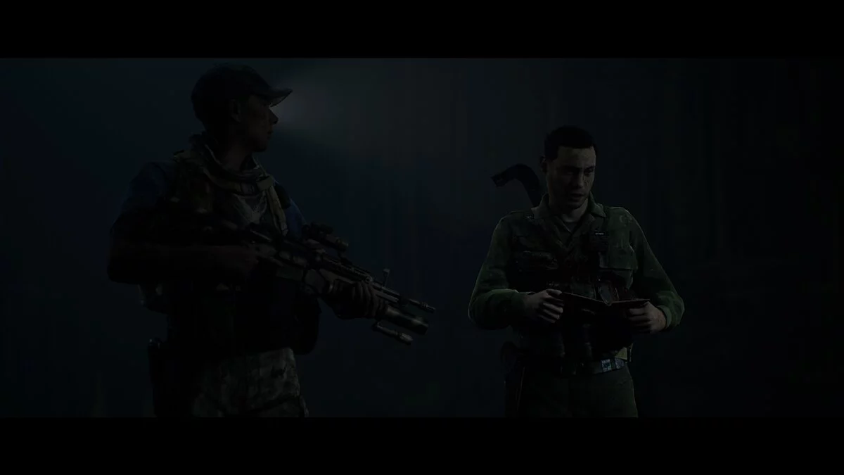 Открываем дверь вместе с напарником и смотрим видеоролик. Если долго удерживать рот солдату, то он умрёт. Это действие повлияет на дальнейшие события.