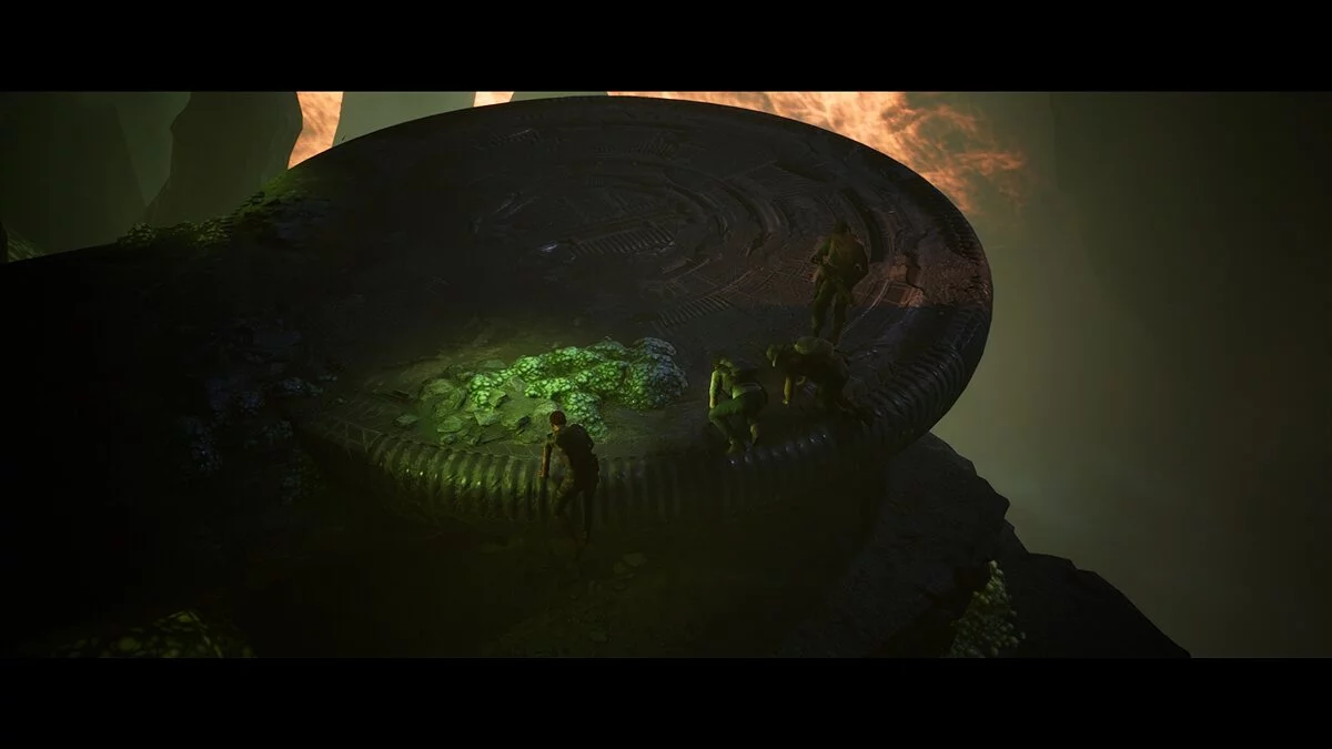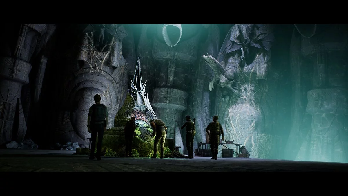 Осматриваем два стола и ящик и последовательно открываем коллекционные предметы №36 «Дневник Рэндольфа, часть 10», №19 «Жизненный цикл существ» и №45 «Признание Ван Хётена». Спокойно разговариваем со всеми членами отряда и осматриваем колонну вместе с Салимом. Водим пальцем по кругу, пока загораются огоньки, и наблюдаем за очередным видеороликом.