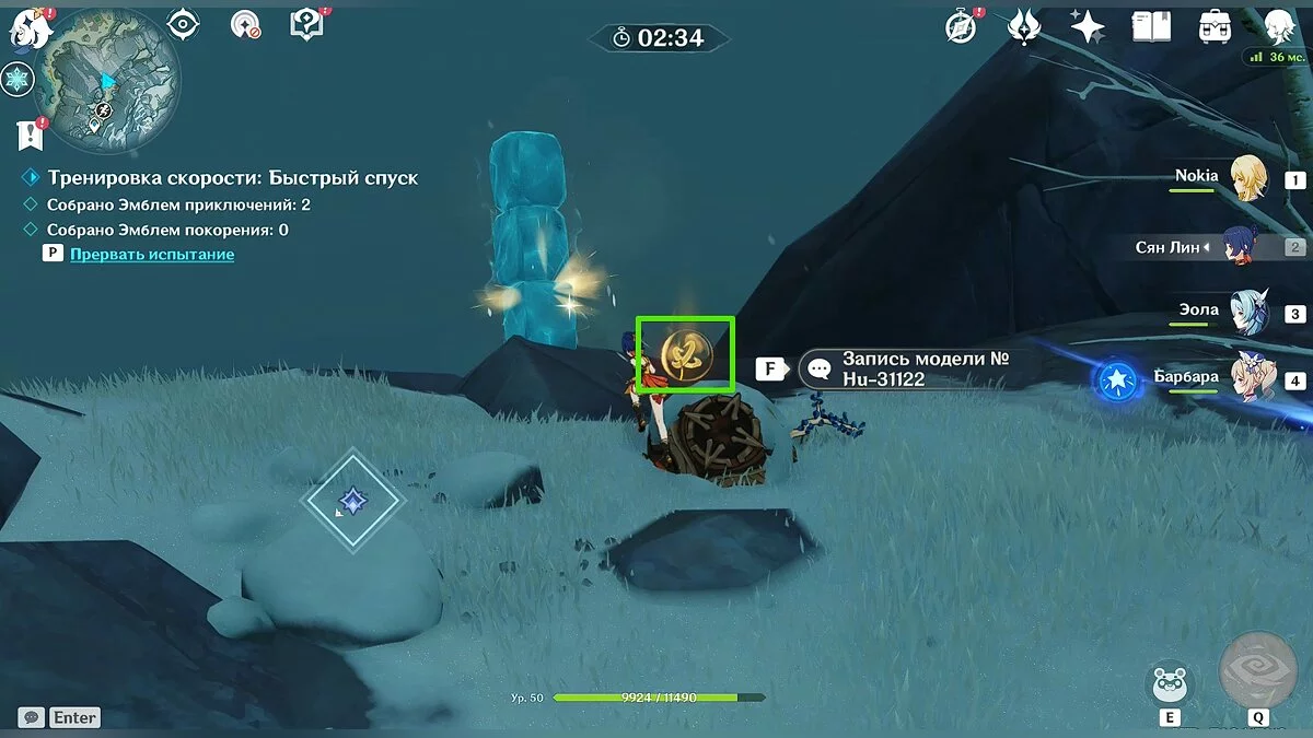 - Благословение твёрдости (значок желтого цвета): позволяет разбивать ледяные колонны в небольшом радиусе действия. При активном благословении подойдите максимально близко к колонне, в которой находится Эмблема приключений. Колонна будет разрушена, а вы сможете забрать эмблему.