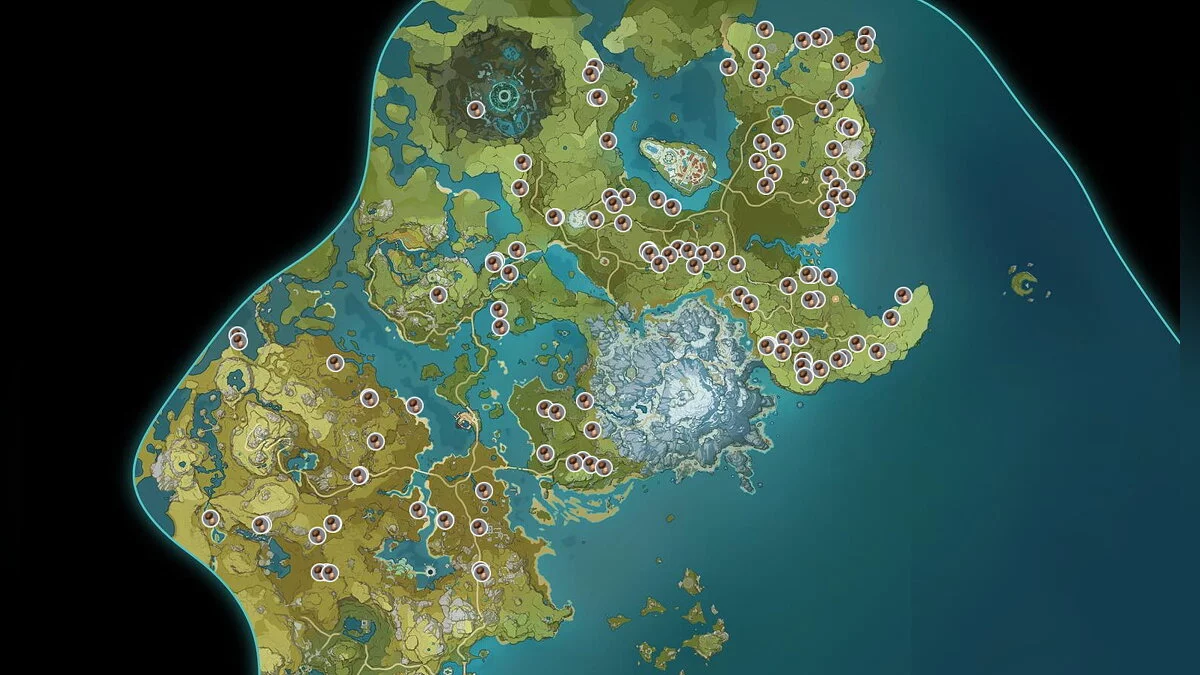 Кор ляпис также можно найти в Мондштатде и Ли Юэ. На карте мы указали, где его стоит искать: