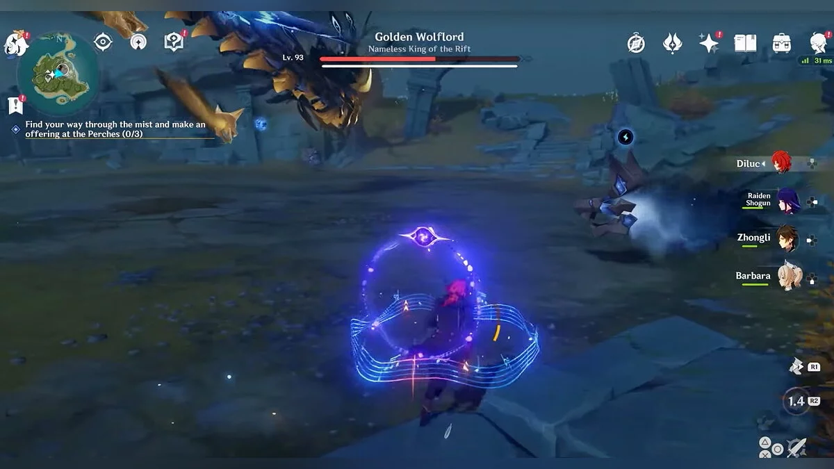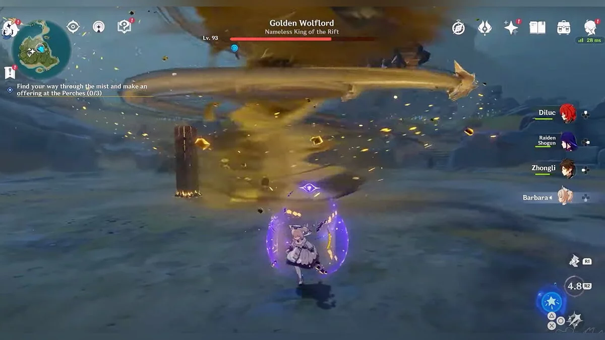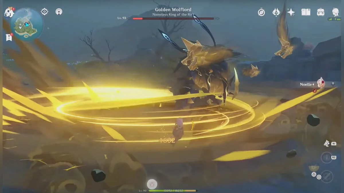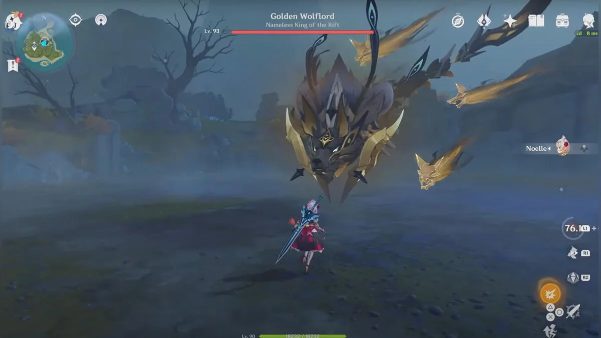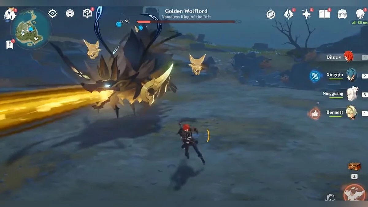 - Постарайтесь не тратить взрывы стихий атакующих персонажей во время первой фазы сражения. Лучше использовать их после уничтожения волчьих призраков, когда босс упадёт и станет уязвим. Это произойдёт во второй фазе боя.