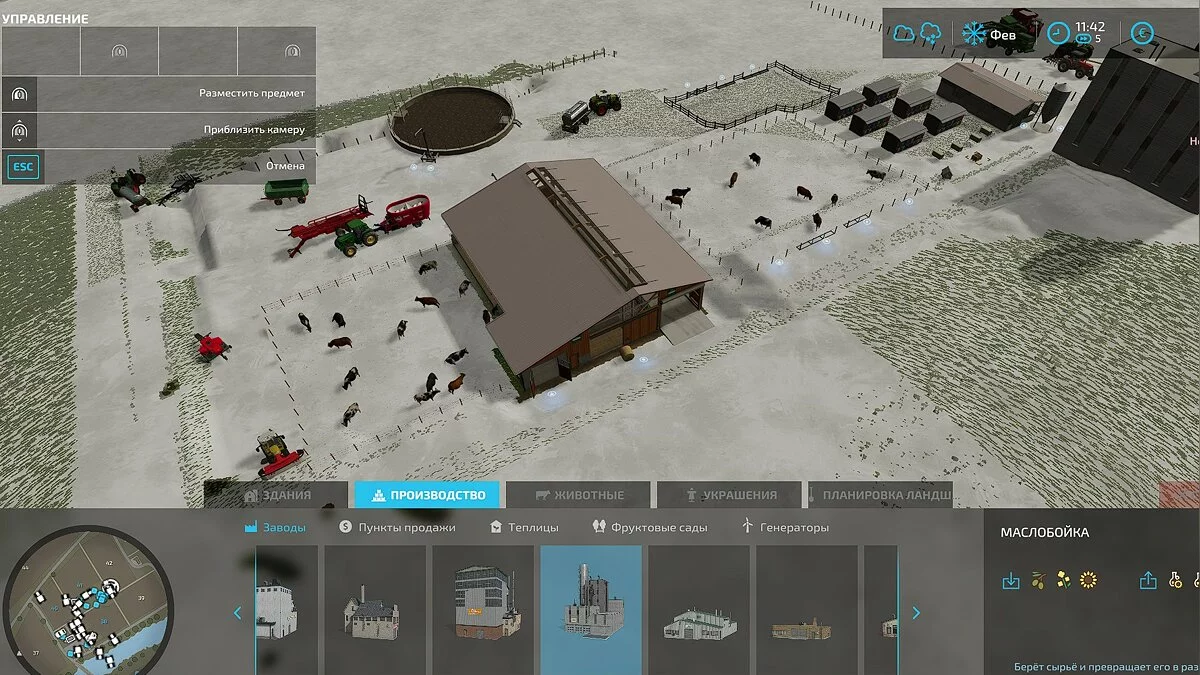 Здесь нужно выбрать раздел «Животные», а далее кликнуть на необходимое пастбище, коровник или пасеку, и разместить его. Стоит отметить, что вы можете размещать строения только на территории своей фермы.