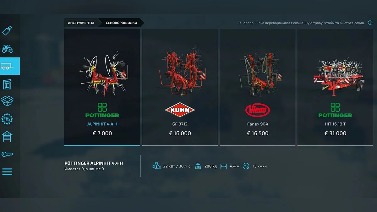 - Сенокосилка (инструмент): лучше всего приобрести сенокосилки в разделе «инструменты», которые цепляются к малым и средним тракторам;