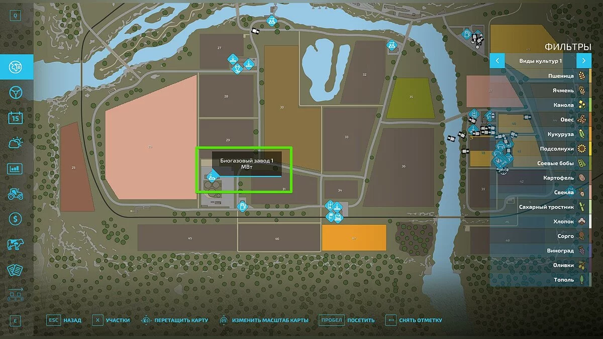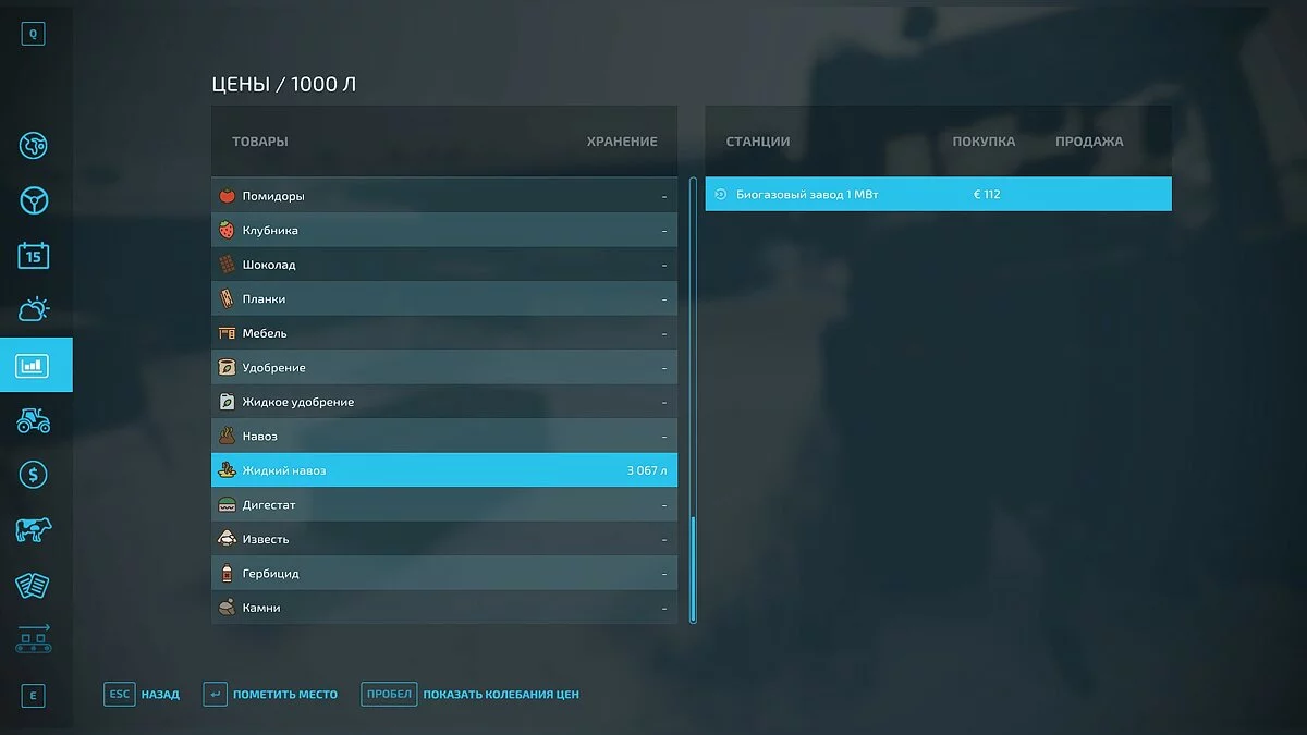Остальные культуры, которые существуют в игре, придётся либо продавать, либо перерабатывать на заводах. Откройте главное меню при помощи клавиши «Esc», выберите пункт «Цены» и отследите самое интересное предложение на рынке. Чтобы пометить покупателя на карте, нажмите на клавишу «Enter». С этого момента покупатель будет отображаться на карте, а вам лишь останется довезти товар до пункта назначения.