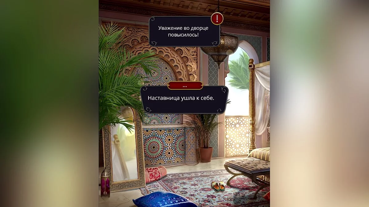 За выбор любой одежды и причёски повысится уважение во дворце. Наставница уйдёт из комнаты героини — девушка останется наедине со своими мыслями.