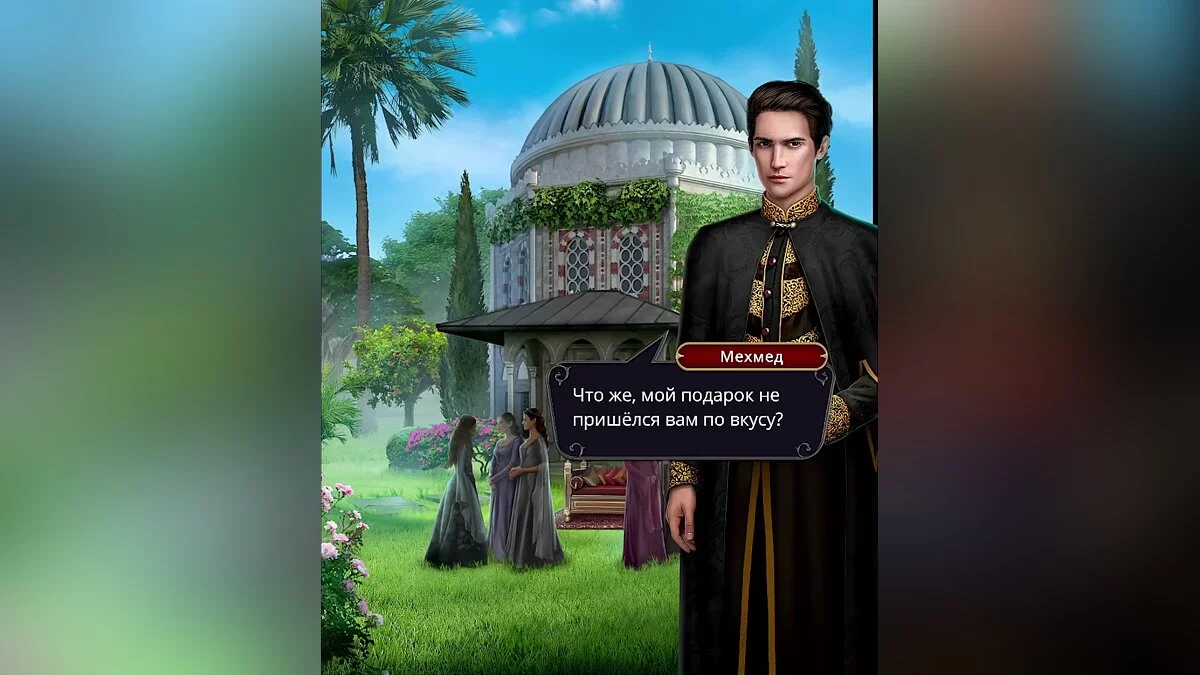 - Героиня приняла подарок и письмо от Мехмеда и не надела шаль — откроется сцена с прогулкой и возможным поцелуем без каких-то условий.
