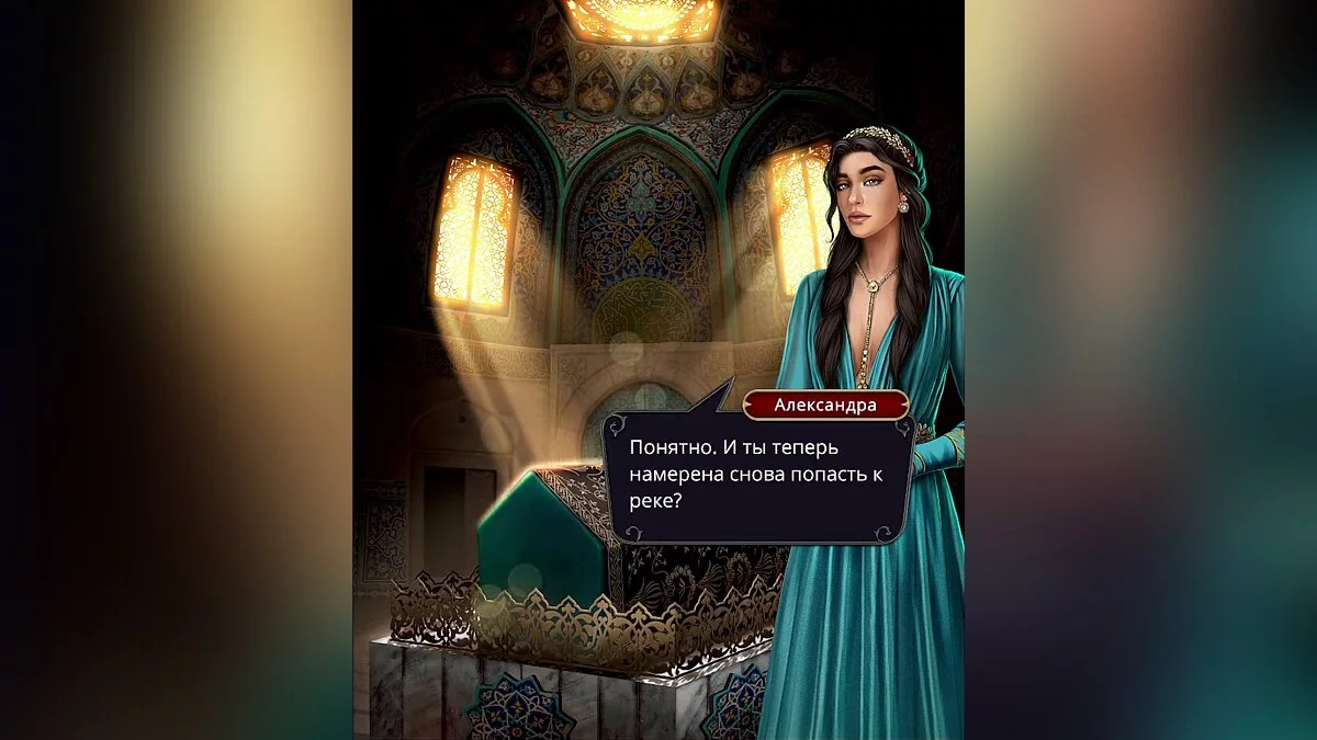 - Героиня приняла подарок и письмо от Мехмеда и надела шаль — появится дополнительный выбор.