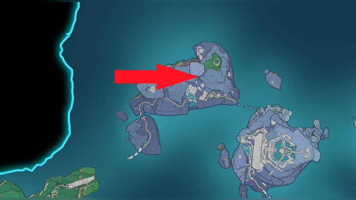 Чтобы найти книгу, нужно добраться до одинокого острова на севере локации. Телепортируйтесь на остров Дайнити Микоси и следуйте на север. Неподалёку от обрыва вы найдёте телепорт, который отправит вас на скрытый остров.