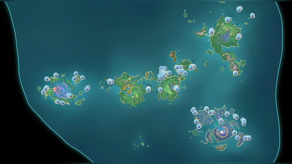 «Морские грибы» можно найти на побережье и в мелководье островов Инадзумы. Места, где их стоит искать, мы указали на карте.