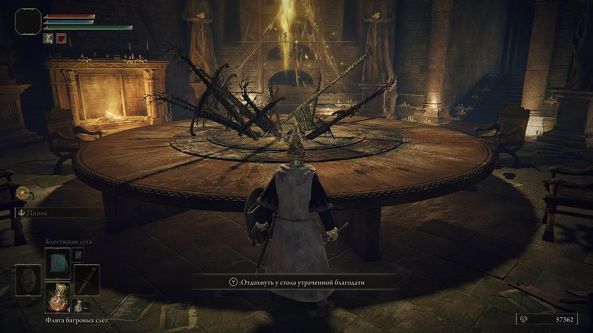 Покинуть крепость намного проще, чем в неё попасть. Для этого просто откройте карту (клавиша G на ПК) и выберите любое место благодати. Используйте быстрое перемещение в нужную область. Помните, что стол утраченной благодати в Крепости Круглого стола используется как место благодати, поэтому вы можете телепортироваться в эту локацию в любой удобный момент.