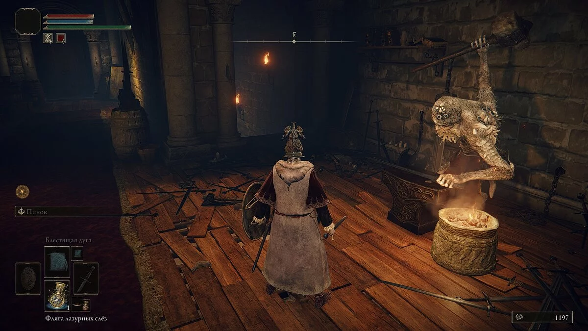 Следующий персонаж, с которым можно взаимодействовать для улучшения оружия и брони — Кузнец-мастер Хью. Для каждого улучшения потребуется отыскать кузнечные камни. Подробнее о кузнеце и кузнечных камнях мрака мы рассказали в отдельном гайде.