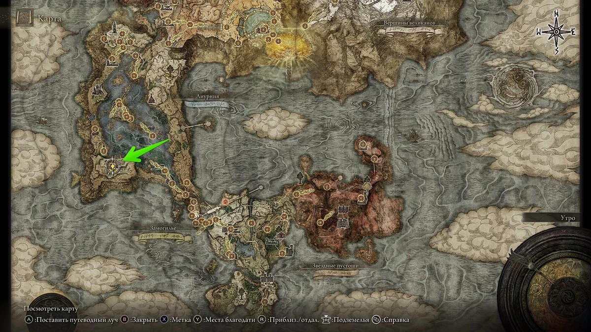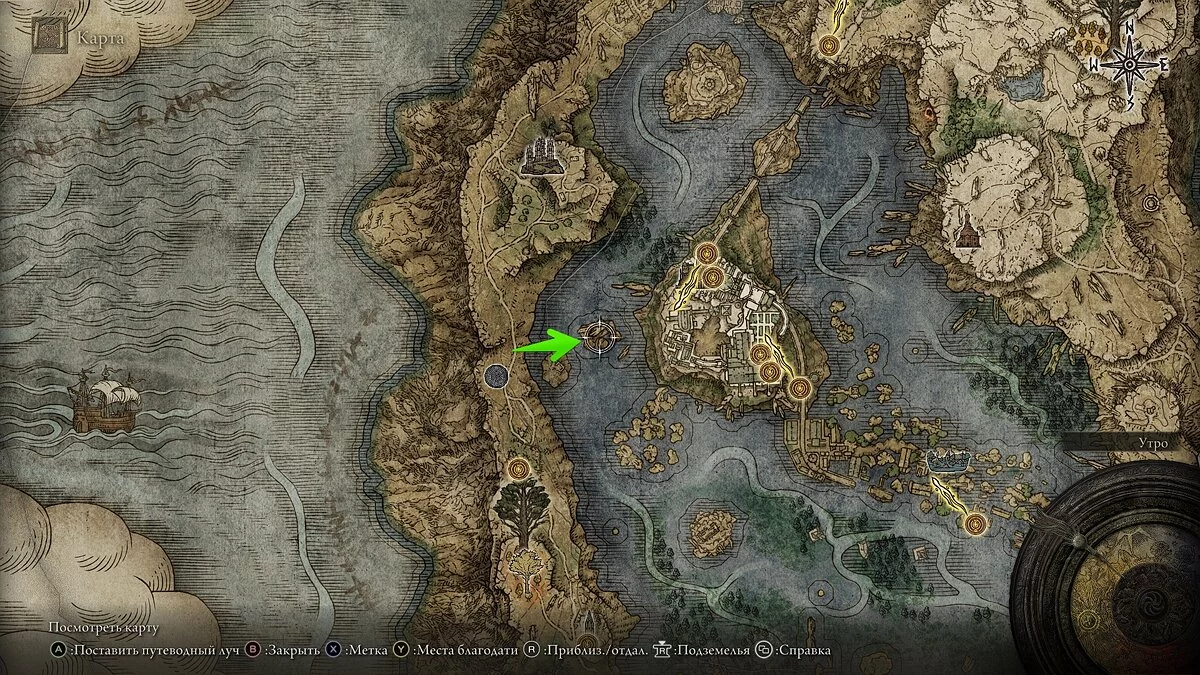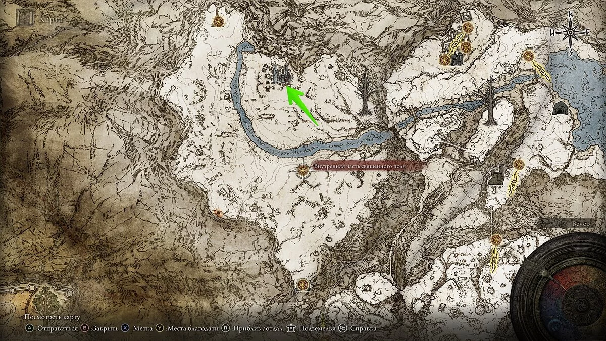 Добравшись до секретной локации, осмотрите её и найдите заброшенный город Ордина. Он находится на возвышенности, напротив места благодати «Внутренняя часть священного поля».