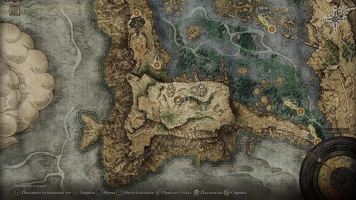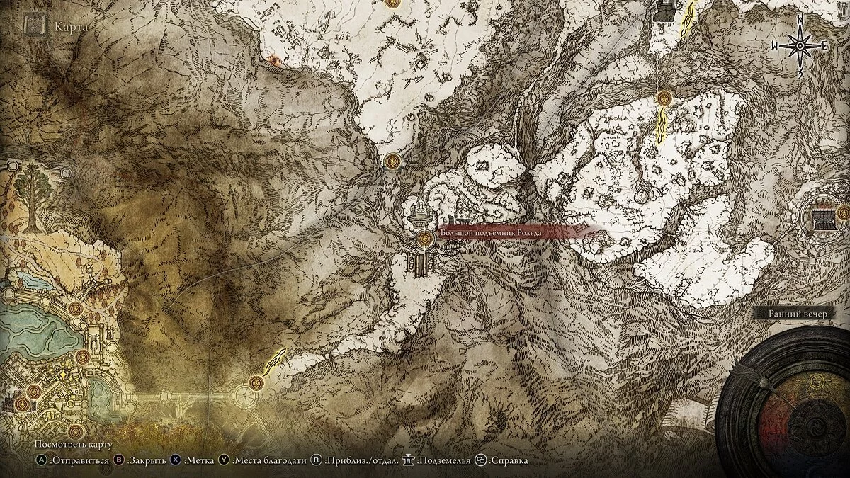 Активируйте место благодати «Восточные ворота Райи Лукарии», чтобы открыть возможность для быстрого перемещения в эту локацию. Если продолжите следовать по дороге на север, то найдёте Великий подъёмник Дектуса. Активировать его можно при помощи двух частей медальона.