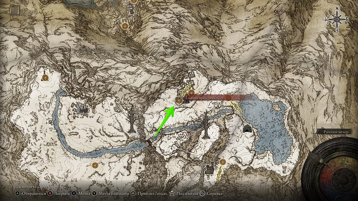 Теперь, когда у вас есть доступ к северной части Запретных земель, вы можете приступить к поискам двух частей Тайного медальона Святого Древа. На самом деле здесь вы найдёте лишь одну его часть. Для этого нужно отправиться в замок Сол и подняться на самую высокую башню, чтобы сразиться с боссом. После боя вы получите первую часть медальона.