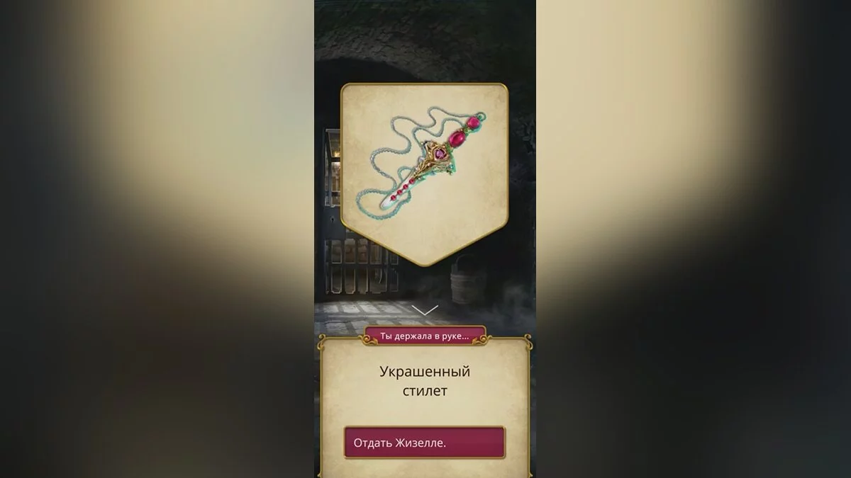 Примечание: если вы всё же сохранили украшенный стилет, который достался вам от леди Кристин, то отдадите его Жизелле. Девушка начнёт вскрывать замок, но кинжал застрянет, а когда Таки попытается вытащить его, нож упадёт и прорежет камень. Вы получите (+2 Сострадание