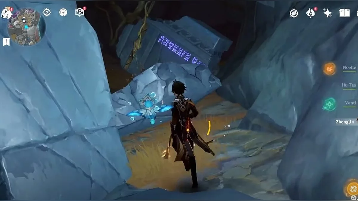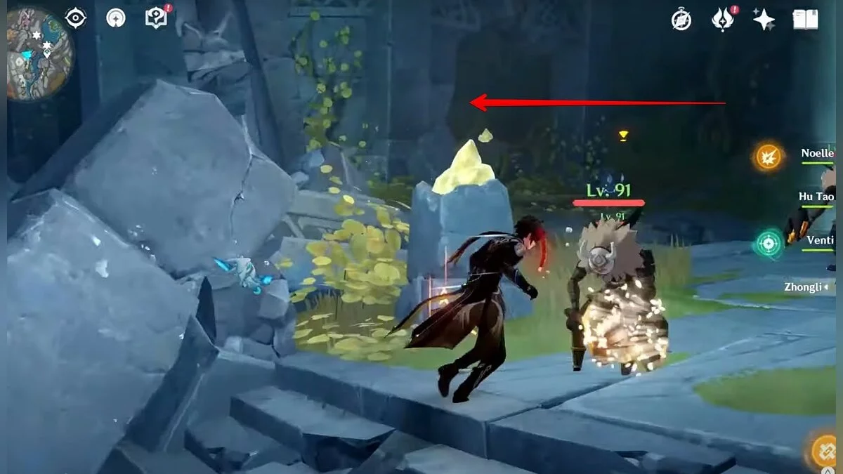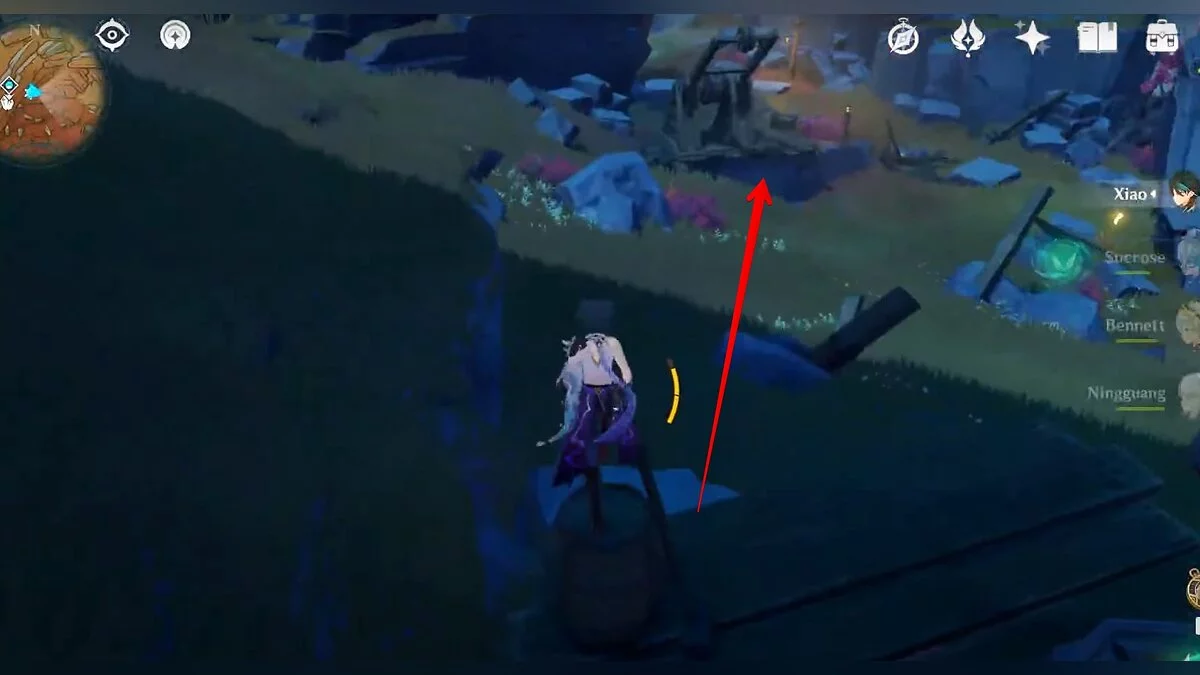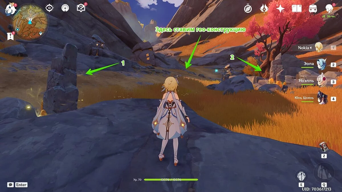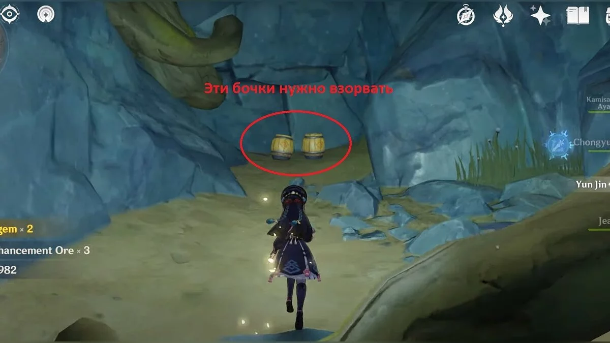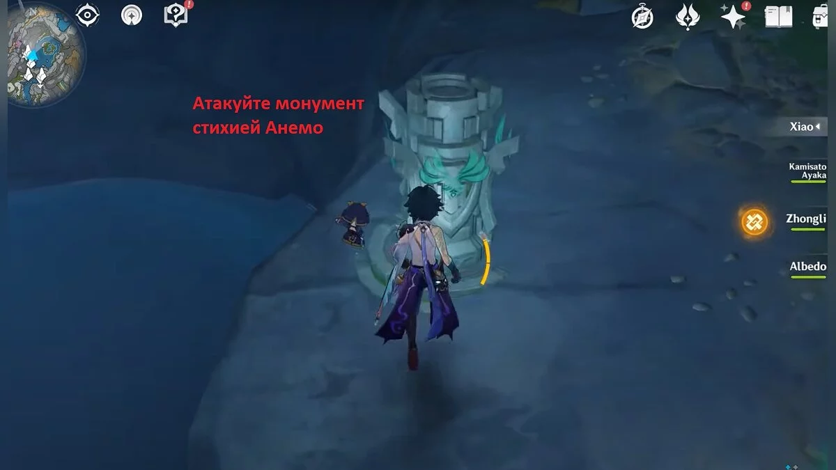 Вам потребуется персонаж, который может создавать гео-конструкции. К ним относятся Путешественник (Гео), Нин Гуан, Аратаки Итто, Альбедо и Чжун Ли. Отправляйтесь в точку, которая обозначена на карте.
