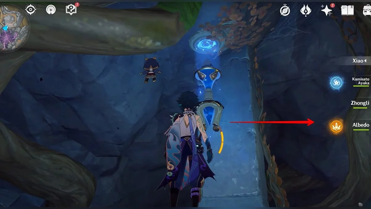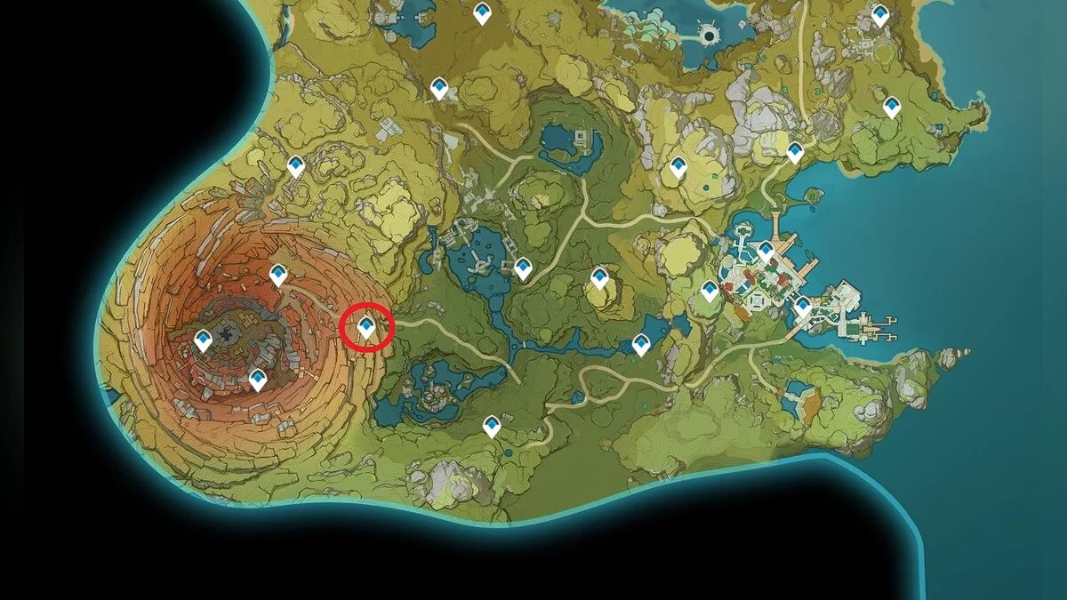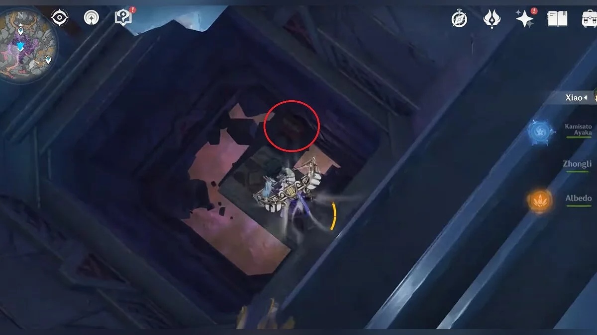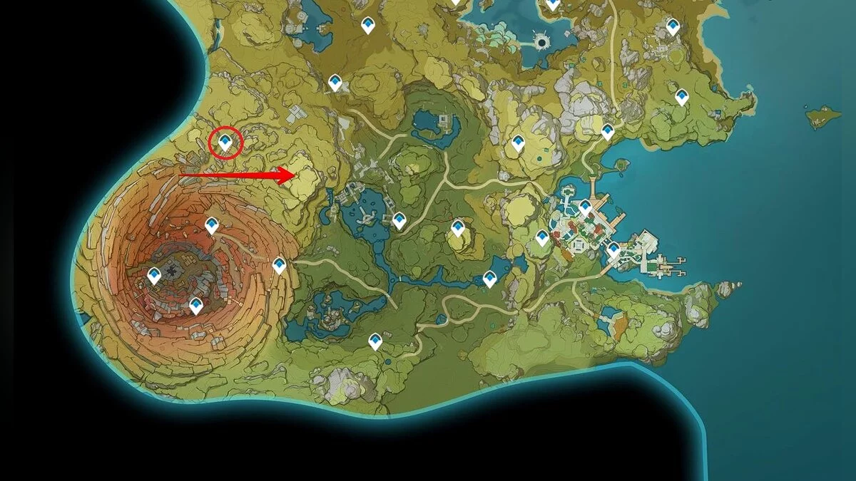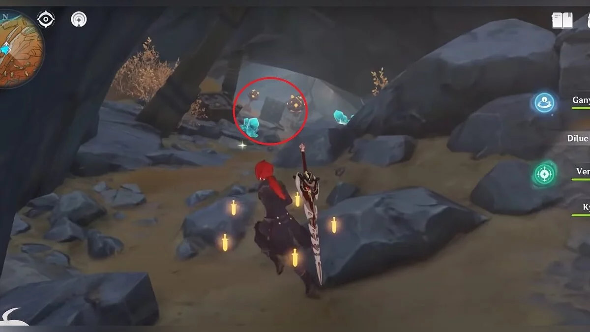 Вам потребуется персонаж, который может создавать гео-конструкции. К ним относятся Путешественник (Гео), Нин Гуан, Аратаки Итто, Альбедо и Чжун Ли. Отправляйтесь в точку, которая обозначена на карте.