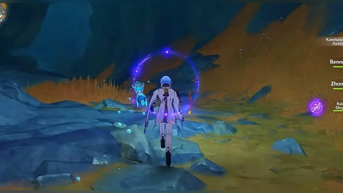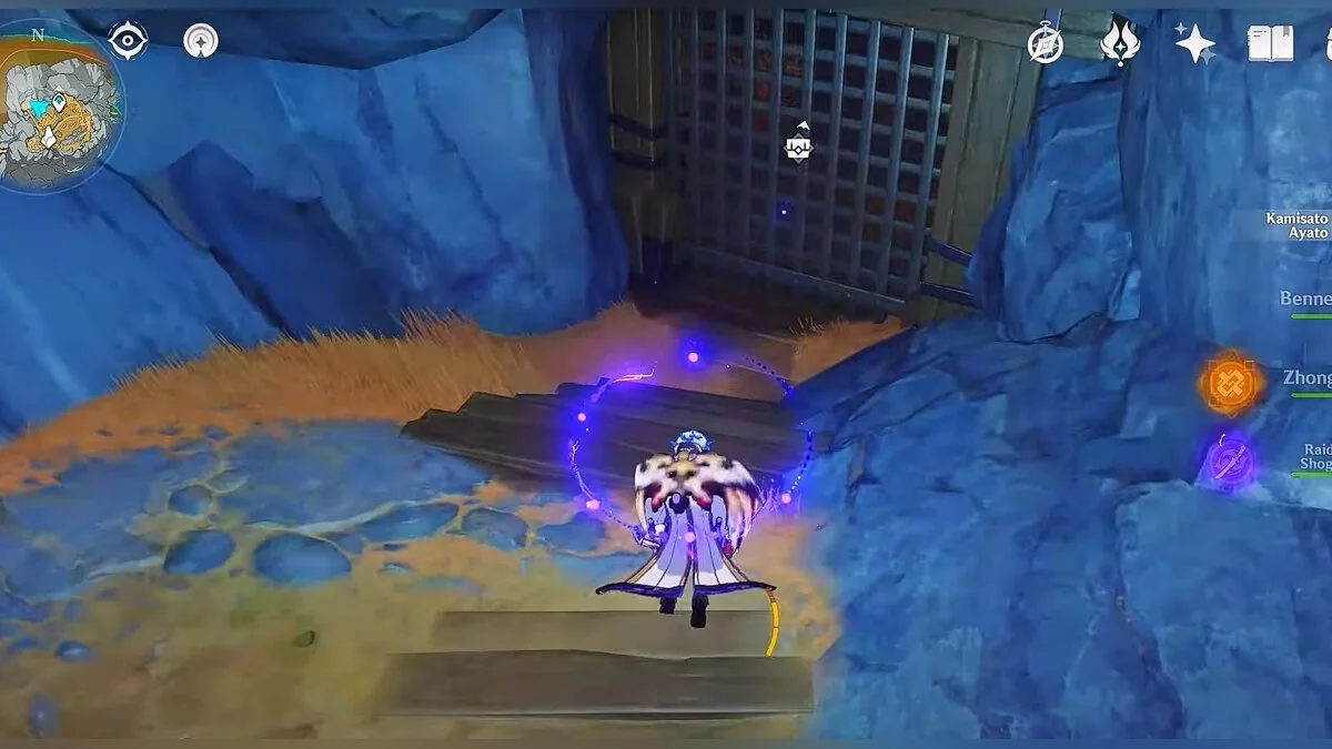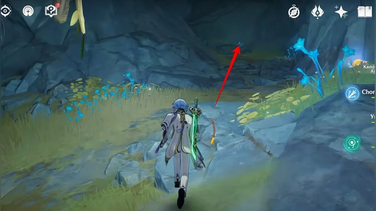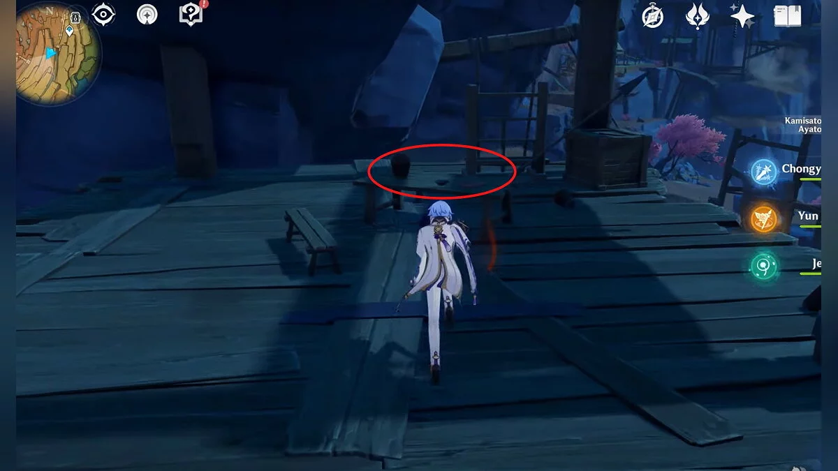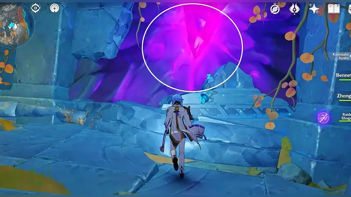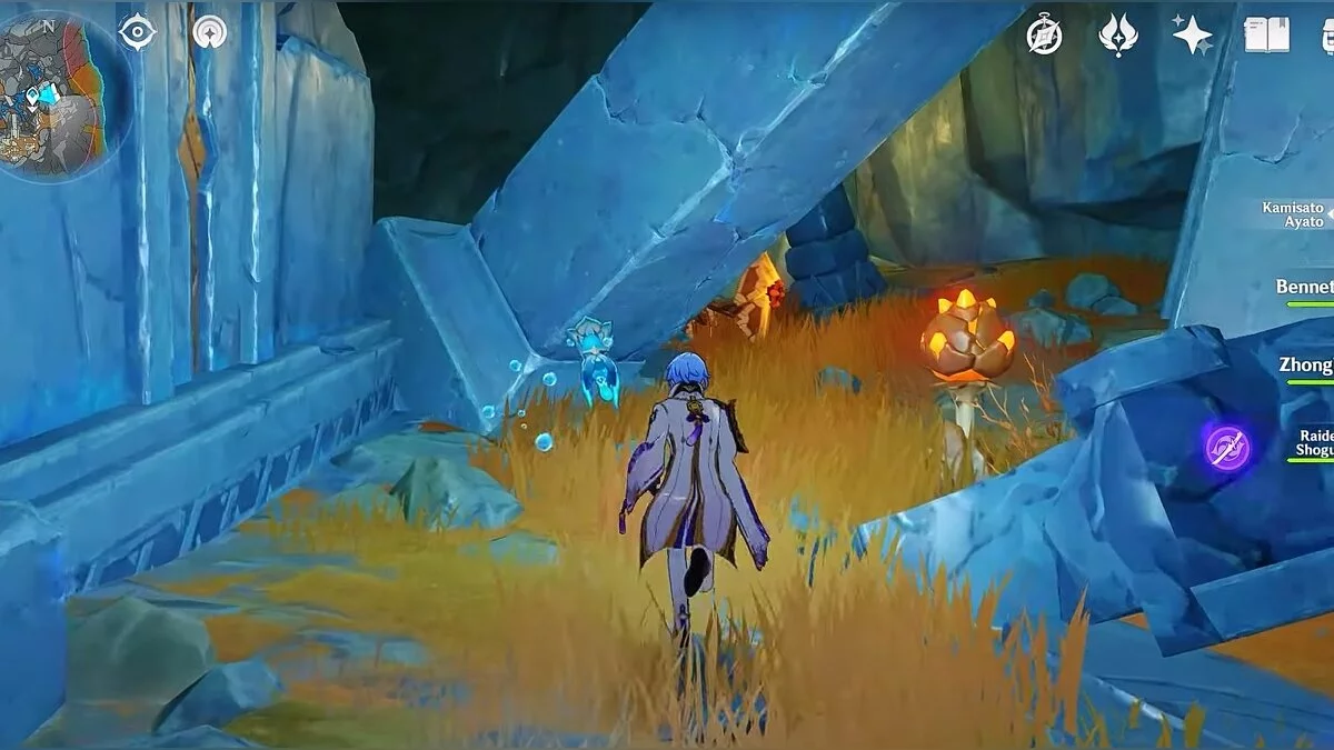 Вам потребуется персонаж, который может создавать гео-конструкции. К ним относятся Путешественник (Гео), Нин Гуан, Аратаки Итто, Альбедо и Чжун Ли. Отправляйтесь в точку, которая обозначена на карте.