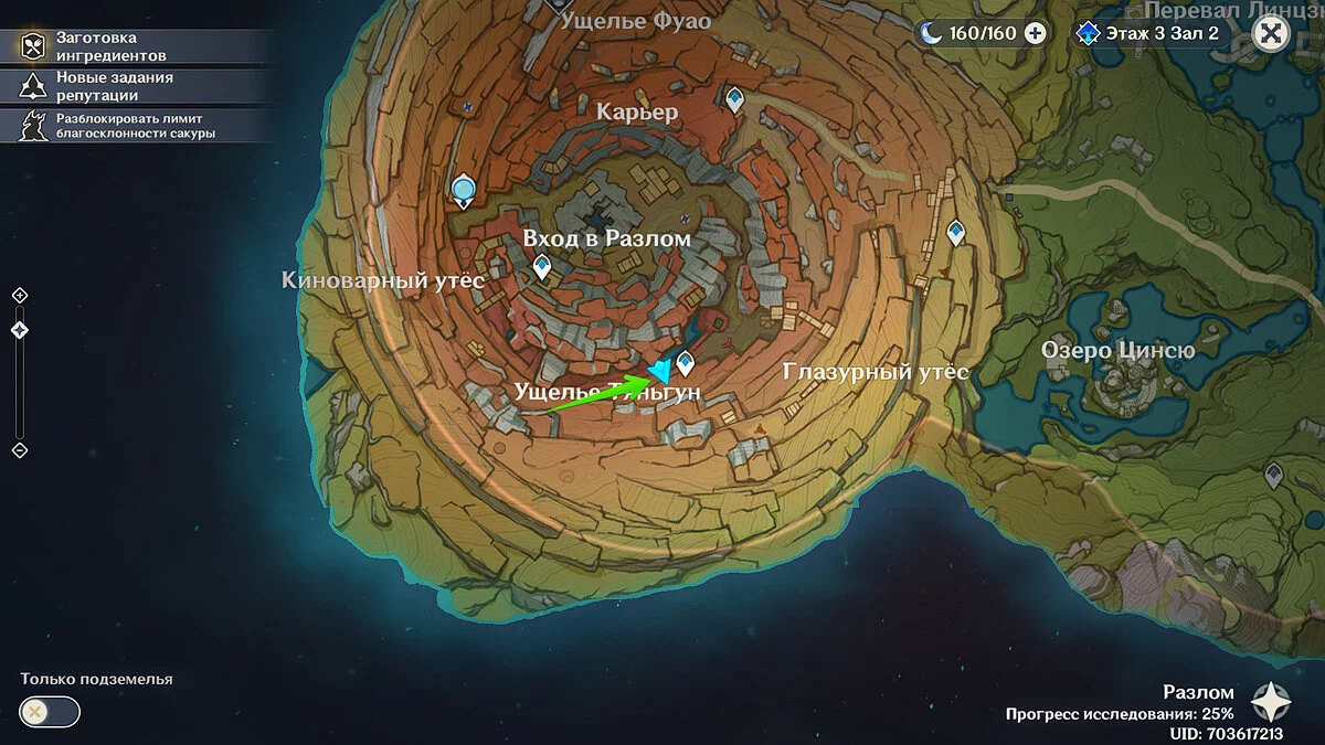 Небольшая часть Разлома находится на поверхности, неподалёку от Ли Юэ. Но основная локация располагается под землёй. О том, как разблокировать этот регион, мы рассказали в отдельном гайде.